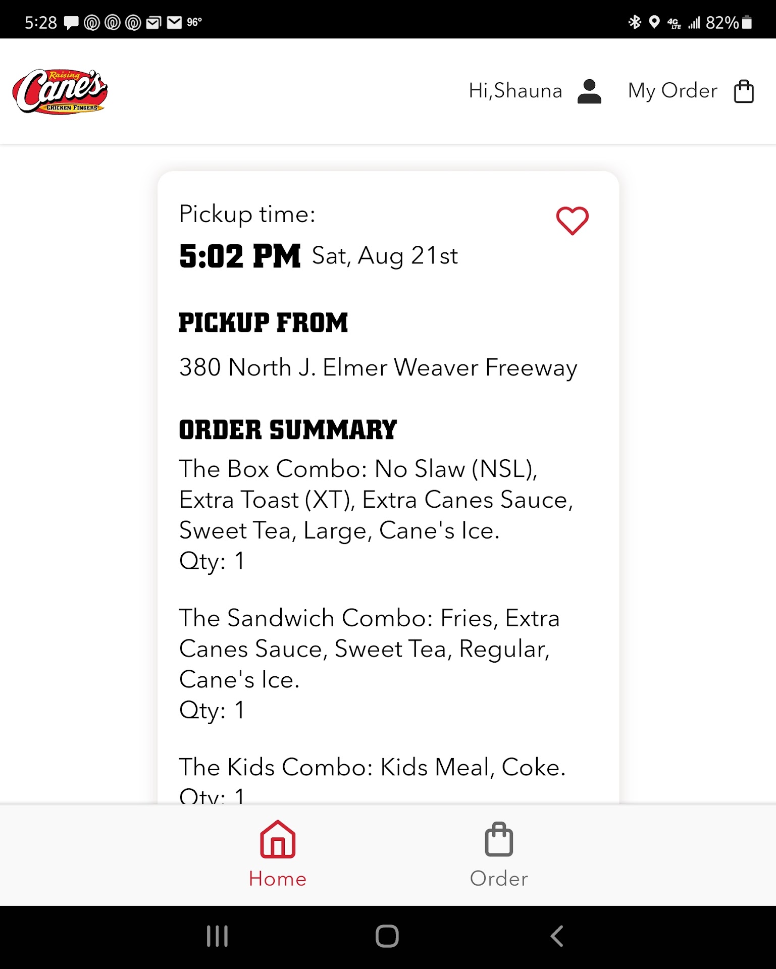 Read moreMaking this review after visiting in person once, and maybe 6 DoorDash orders from this location. In person, I did a mobile order for carry out. No one ever came out to bring the order, I called in and then someone finally came out. With DoorDash, my orders came correct for the first 2 or 3 times, for these last 3 I have done, literally everytime I am missing either half or basically all the order. I always order 2 of the 3 finger combos, and extra toasts on the side. 1st time I got no extra toast, okay I let it slide. 2nd time I didnât receive no combos, but the toasts.. no notification that the order was changed either. 3rd time this morning.. 1 combo is missing completely and only 1 extra toast was received. Itâs the middle of the day. What is happening up at the canes that Iâm missing more than half the order. I donât fault the driver for orders being incorrect when it is only this location.