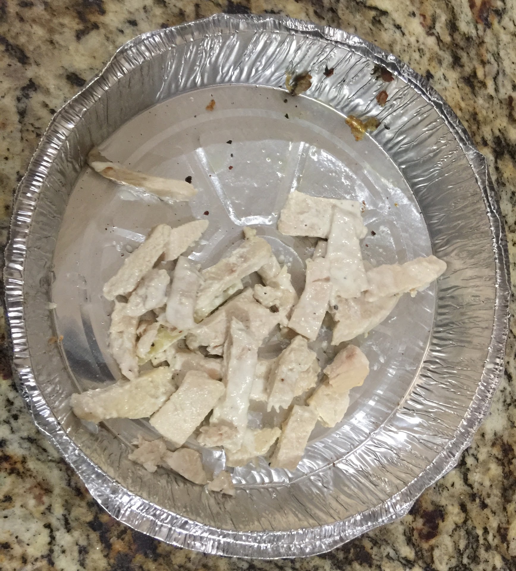 The chicken looked and tasted beyond awful. I had to pick out the “chicken” from my fettuccine Alfredo and throw it in the trash. So I ended up eating fettuccine Alfredo with no chicken. This is the worst chicken I’ve eaten in my entire life. And for a restaurant to serve it is unbelievable.