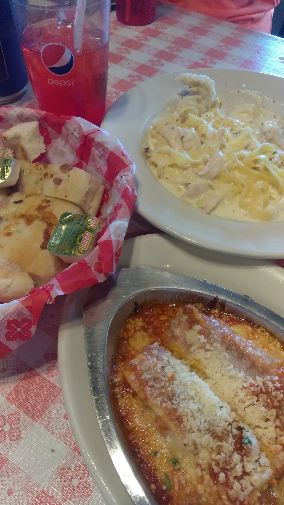 I ordered fettuccine Alfredo, side salad, and a large pepperoni Pizza. The family did not liked the fettuccine Alfredo but we ended up bringing it to the house for Mondays lunch - still eatable!
