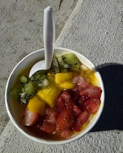 We tried shaved snow in Kauai one time and have been looking for it ever since. This is exactly what we’ve been looking for! Shaved snow without the need for Syrup. They use this creamy mango infused ice so you don’t need to do syrup. They still give you the option to put syrup on top if you want, but it’s really not necessary because it’s plenty flavorful on its own. Then they go ahead and top it with fresh fruit if you...
