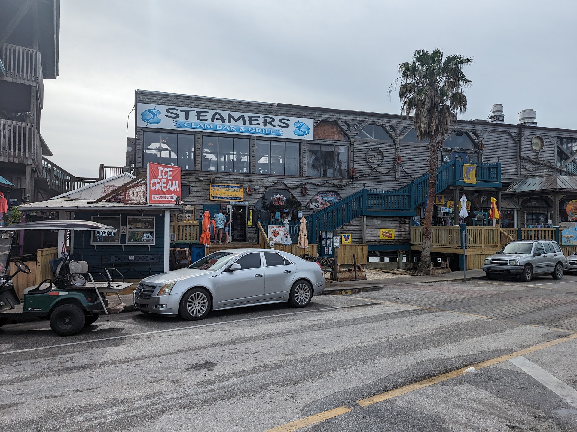 We visited Steamers Clam Bar & Grill in its shared location with 2nd Street Cafe, October 2025. Of course we picked the same day and stumbled across The Cedar Key Seafood Festival. We didn’t expect to visit during organized chaos. I guess that was good and bad. Since we had to pay to park a little bit farther away from the normal free street parking close by, it obviously added to the cost of this visit. But that’s the luck of the draw when you stumble across a village festival. This also made them very busy. As such, we had to wait for a table. As we sat and waited, I could hear the times getting longer and longer. We were seated inside and were surprised to see how much room there was between tables. I don’t know if this was normal, or because of the amount of tables outdoors (at least this day). But unlike a lot of eateries, there was plenty of room at tables. It was a good time to witness the staff in action dealing with maximum capacity. They did pretty good. Yes it took a while for pretty much everything. But not drastically so. But considering the non-stop turn over, they did well. But due to the crowd, we really never interacted with our server other than ordering, food delivery and check time. I'm sure it's a lot better when it's a normal visit without the line out the door. So I won't think bad of them in any way because of it. The food was pretty good as well. I went with a small clam chowder and an order of buffalo wings. Both were good. The Clam Chowder had a slightly different flavor than I’ve had so many times up north. But it was a good different. We both enjoyed the chowder. The small size was not all that small. A large size probably would have been a full meal. And the chowder had nice sized bits of clams in it. Yes, I would get it again. The wings were probably not the best that I’ve ever had. But they were also good and would get them again. The medium buffalo sauce did have a darker appearance. I first thought they were over cooked. But that was not the case. They were fine. And yes I would get them again. The wife had chowder and crab cakes. She also said it wasn’t the best she ever had, but enjoyed the same things I said. But she thought the crab cakes were only OK. The prices are subject to one’s opinion. Some will feel they’re reasonable. Others may not. I included the fall 2025 menu pictures for your viewing pleasure. It may help you decide on whether you may want to try them. I’m sure we will return next time we’re in Cedar Key. Hopefully it will be a little quieter next time. Maybe soon since we’re fairly close. There’s nothing like a large bowl of chowder on a...