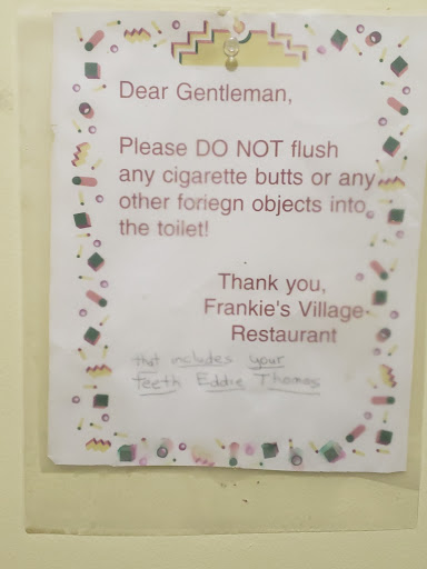 Driving home enroute from Pines, Indiana to Central Illinois, taking the back roads to stop at Efroymson Prairie at the Kankakee Sands, we figured we'd stumble across a restaurant for breakfast along our way. We didn't find any until we found Frankie's Village Restaurant and it was well worth the wait! It has the feel of an old time diner (like my Dad and his family used to own), with a super friendly, attentive staff, great food, and it also is very clean (even the rest room!). I liked that there were friendly locals eating there as well. It just gave me a happy feeling being there! They were even so caring that the cook voluntarily gave my husband 2 extra eggs, just because the yolks broke on the first two (which were all just as tasty). That just tells me the kind of decent people they are and it's a rare find in today's world. We would definitely eat there again along our travels. It's our...