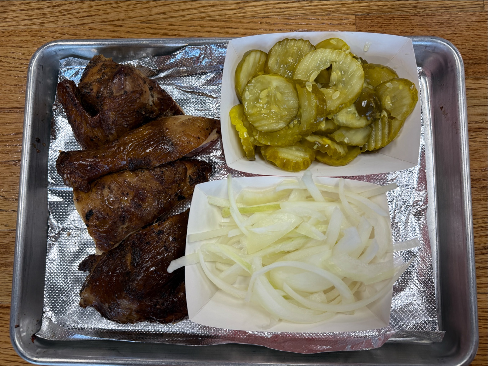 Beef ribs, half chicken, brisket- Nothing to write home about. All perfectly cooked but lacking smokiness and overall flavor, could have used more salt and pepper general. I tried the sauce provided but it was overly sweet for my taste.