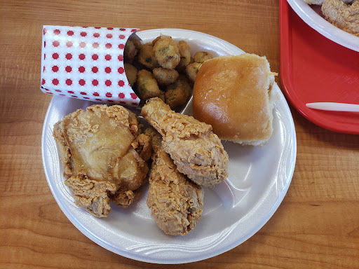 Read moreI have coupons from December paper. I was meaning to go for a long time, I just wanted to check it out. Well, we went here yesterday, and I am so glad!! I am going there again today!!! Ice tea is absolutely 😋 the half and half which is half lemonade and half sweet tea. The prices were amazing I cannot believe the box that I got with my chicken tenders. I ordered a side of fries and I got, a delicious gravy, roll, Texas Pete sauce. Crispy chicken was extremely tender on inside. Wasn't greasy like other fried Chicken franchises. My car hop server was Karina.Very well knowledgeable in the products, gracious lady... Gave me a run down of drinks flavors and menu. Patient and kind. She needs a reward!! Were going to try the other things on menu.. I'm adding to this:. This is Jan 27, 2021. This is our 3rd visit. We ordered the #7 family pack tenders, rolls ohh Soo buttery soft ;-P. Family side of okra, pepper poppers. I'm putting them in a freezer Ziploc bag so now whenever the grandchildren stop over I have tenders the fried okra and rolls to just pop in the toaster oven, they're ready in a couple minutes! Such delicious food!! Very reasonable price!! Come on people stop in and get some of this delicious chicken 🍗 Our car hops name was "L e i d y". An...