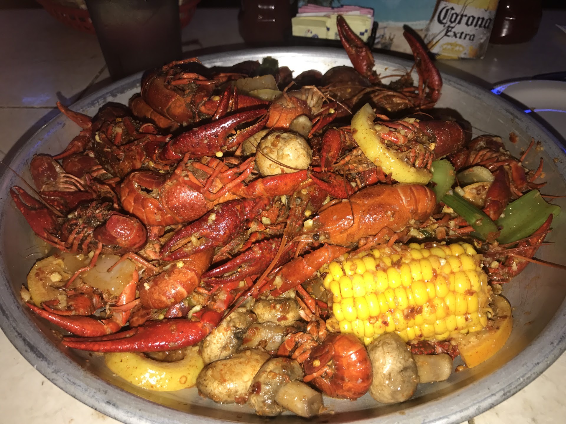 The crab legs were the best crab legs I have ever had..EVER. I got them boiled extra spicy and they did not even try to be nice about it. It was so spicy, but I loved every bite. The flavor of the spicy Cajun seasoning juices rolled in with lemon and orange wedges, garlic, mushrooms, potatoes, onions, and corn made for a beautiful blend that sent my taste buds soaring!