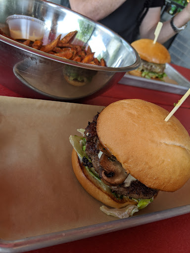 We ordered the magic shroom burger, El Diablo burger, sweet potato fries, truffle fries, and a kids grilled cheese with regular fries and milk (substituted for a fountain drink at no extra cost). The food was all delicious. The burgers seemed smaller than what I remembered and the fries servings bigger than I remembered (they used to come in a paper cone and now they come in a big bowl), but since it's been a while since I've been to Hopdoddy I don't know if those are changes given current prices and availability of ingredients or changes they'd made anyway a while back. Either way I had plenty of food and it was all made well and incredibly quickly. They were also very quick and accommodating to replace the kids meal when we mentioned they'd brought out a burger instead of the grilled cheese sandwich we'd ordered, so we accidentally got an extra meal to take home for free. I think the grilled cheese might use inside-out buns, which is an interesting touch that my kid enjoyed.