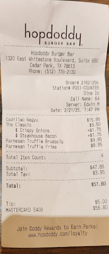 I highly recommend Hopdoddys to others, not only for their enticing promotions but also for the exceptional customer service that sets them apart. I am confident that, under the leadership of Chris, this company will continue to thrive and provide memorable experiences for its patrons.