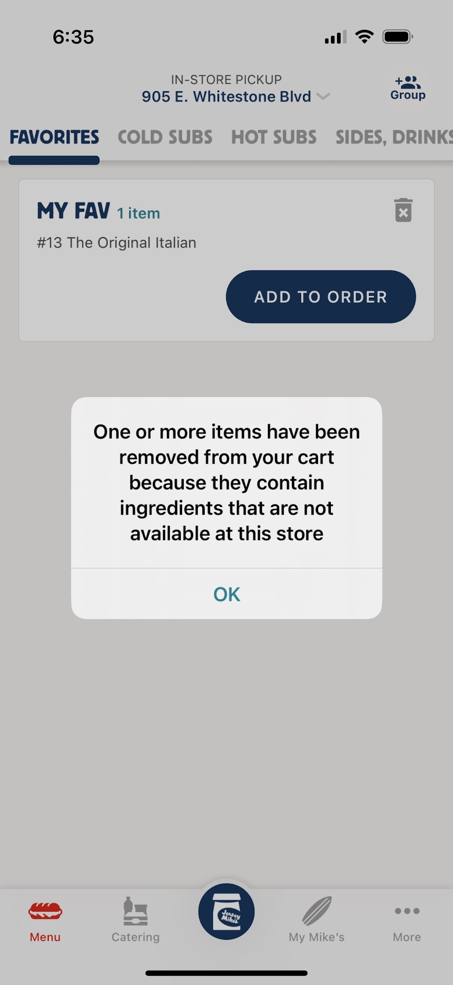 Read moreDon’t order online. They won’t prioritize your order and in fact argue about who’s supposed to make your order, and then they will mess it up (consistently) every time. I used to go here frequently but had to take a break until I went 4 times in the last few weeks and the first, I was the only one in the store (they were 20 minutes late with my order). I figured they were just in a slow period and things fell through the cracks. My second experience was when they had a small but consistent line and they forgot the 3 topping I added to (including 1 I paid extra for), added mayo for whatever reason, and were 20 min late again. My third, I rolled up and picked it up no problem and it was mostly correct (forgot to take off 2 base toppings but I figured I could just take those off). After my last experience I was hesitant to go back but my friends and I wanted sandwiches so we placed an online order (big mistake). All 4 of us got our sandwiches completely messed up (last I checked, an Italian doesn’t come with honey mustard) including one sandwich practically drenched in mayo. I used to enjoy this location but yall are falling off harder than a leper’s toe. At least chips can’t be...