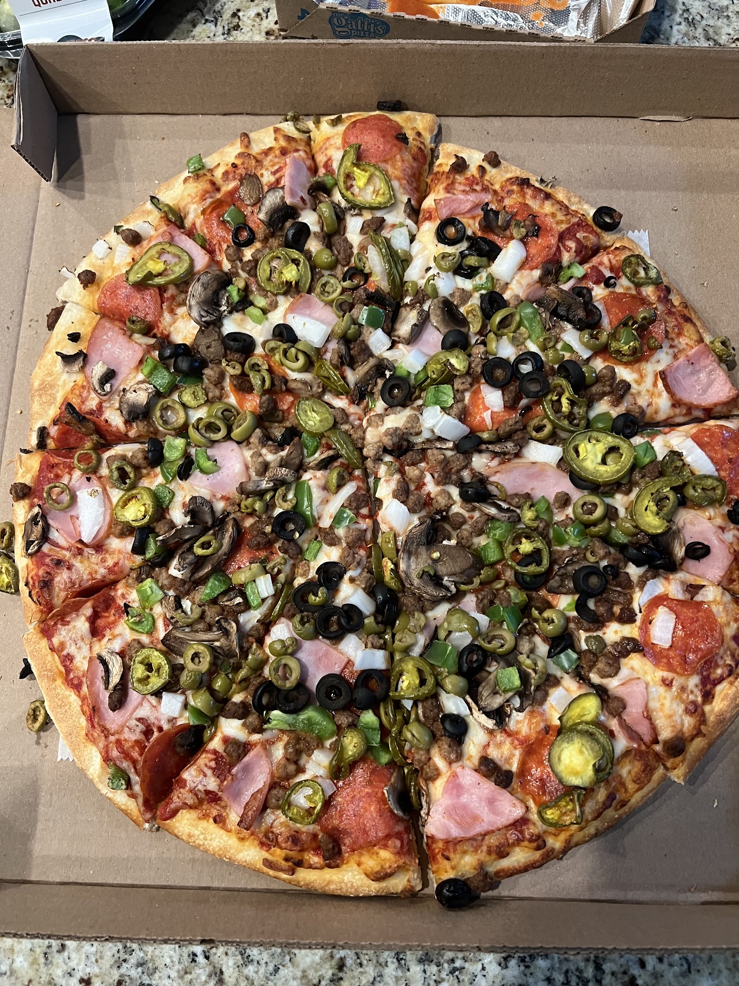 Last minute dinner decision this evening… carry out from Mr. Gatti’s Cedar Park. It was good! A throwback dinner for us, we used to have Mr. Gatti’s regularly back in the day, but with all the good pizza places around, we don’t do “the chains” very often….