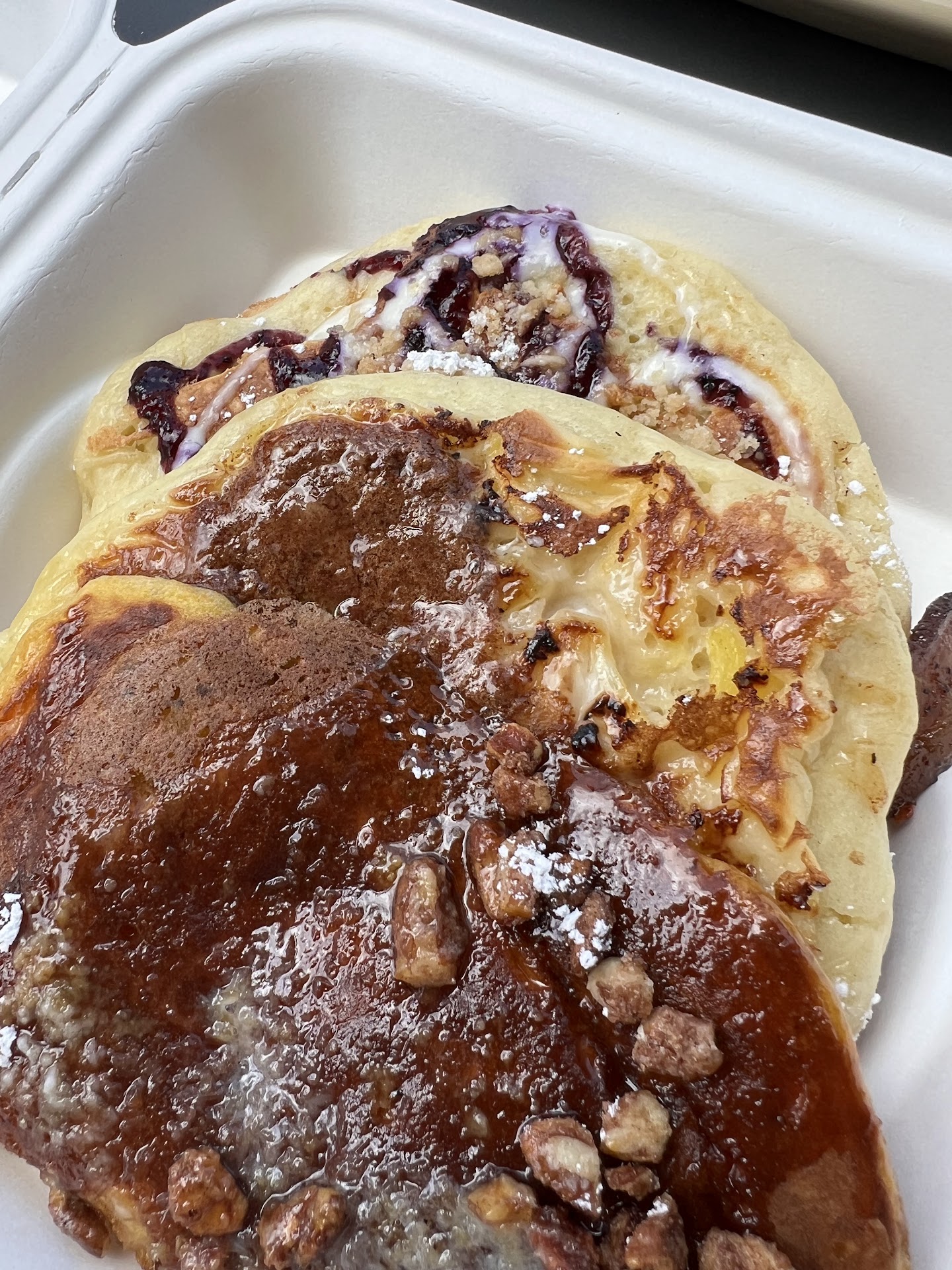 Read moreWell-we landed here unexpectedly. I was at a post-op appointment and decided that my husband should take me to eat.!! I had something specific in mind and wasn’t sure which brunch place had it and I didn’t have time to look at the menus so I chose Snooze Eatery. When we got there, it was quite busy, but we were offered seating inside or outside and chose to sit on the patio. It was a perfect day for it not chilly and not hot! They were running the air conditioning so I did feel it was a little cool for me inside . Our service was provided by Carlos, and he appeared almost immediately to offer us drinks. I chose a coffee as it smelled so good and my dining partner chose a blackberry , lemonade, & mint -handcrafted beverage that turned out to be one of the best things either one of us had ever tasted ! Unfortunately, what I was looking for didn’t happen to be on the menu, but I was happy to try the trio of pancakes. They all sounded delicious. I also ordered their special sugar and spice rubbed bacon which we shared. It was especially delicious and although my dining partner doesn’t care for Spice, it wasn’t so noticeable that it bothered him. My trio of pancakes included one that was sweet potato with some pecans scattered on it, a second one was a pineapple pancake, which had bits of pineapple baked within the pancake, The third pancake was topped with blueberry syrup and drizzled with icing. It was super sweet. My dining partner ordered the regular order of French toast, which was two thick slices of battered bread with fresh fruit, and fresh whipped cream on top . We rarely get out together, so it was really nice to have this opportunity to have brunch together and I hope we can do it again. We definitely recommend Snooze Eatery and also Carlos as he provided great service. He checked on us and made sure that we had everything we needed. The patio was also quite nice. We did have to put up with a few flies and perhaps as they get grounded in their service and clientele they may put in some fans outside, which I think would help. Although we didn’t have adult beverages, they do offer full bar services and I observed several people enjoying mimosas. When you’re in the Cedar Park area, we would definitely recommend you check it out ! Considering they just opened in April, they were remarkably organized and provided...