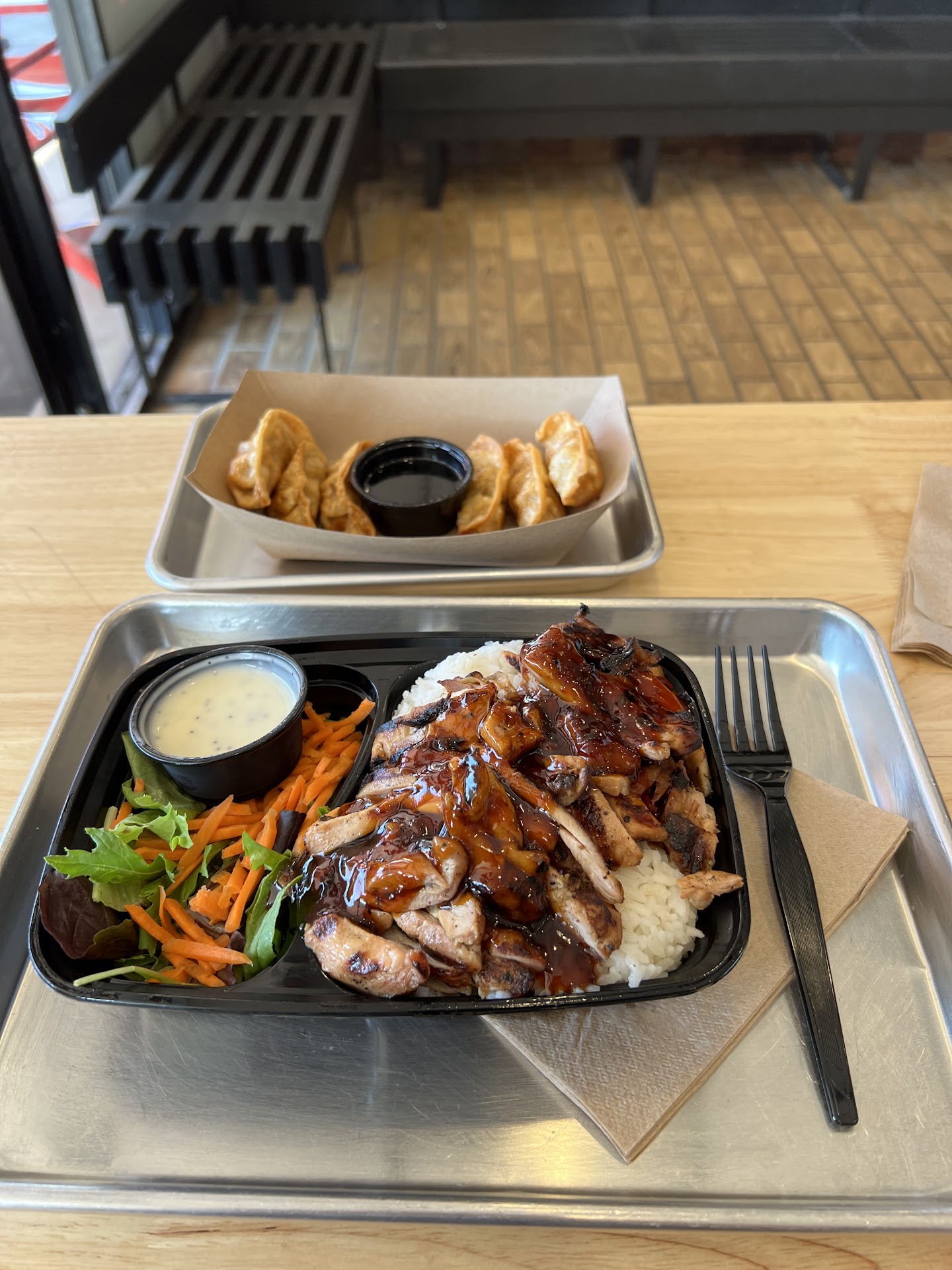 If I had a complaint, it would be to have a salad dressing option. The dressing they provide is very similar to a coleslaw dressing, which is sweet. With the teriyaki chicken being sweet and the dressing being sweet, I wouldâve preferred a savory dressing option. But it youâre getting takeout, you can always add your preferred dressing at home.
