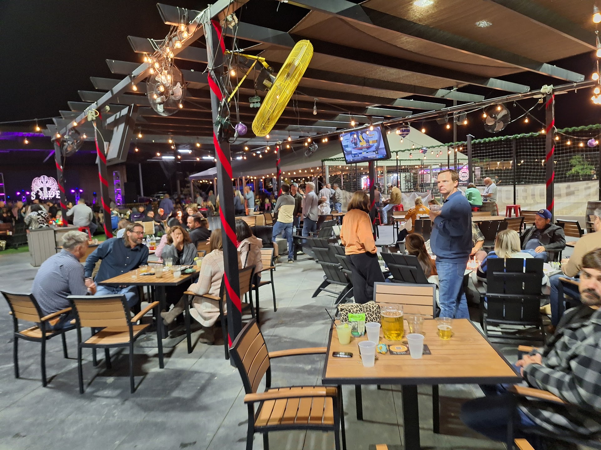 they got volleyball pickleball soccer area even an indoor hockey stadium area they got all kinds of outdoor dining areas here they got live music and even birthday parties going on