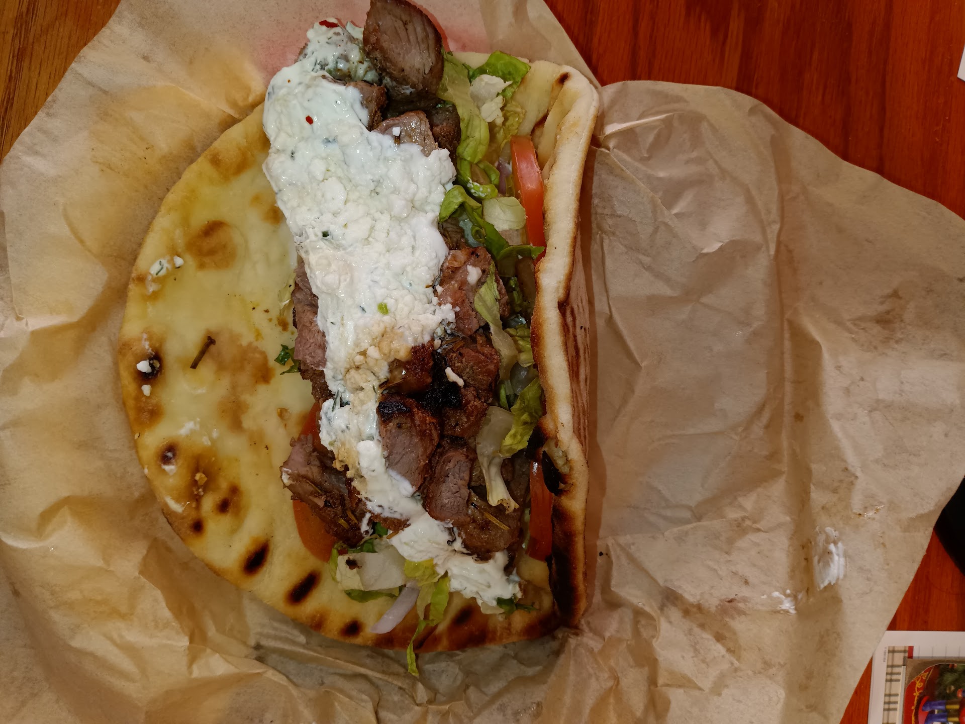 3rd visit Added a picture of our Great Greek Gyro from 23 Jan 2024 that we got for take out.