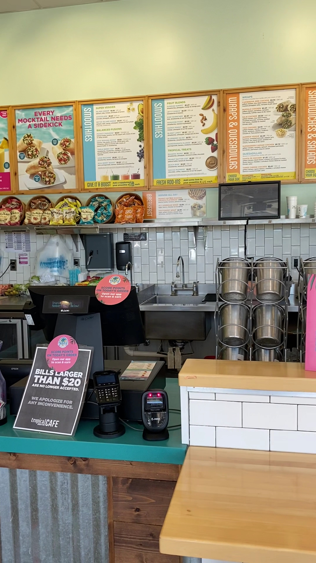 Ā Ā Ā Read moreStopped in trying to get a healthy meal (smoothie), but by the looks of the pregnant lady standing in line they were moving rather slow. I wasn't in much of a rush, but needless to say it took about 20+ minutes to get my order. :/ I came in with the mindset for a smoothie, but there was a check in coupon where you get a discount with a sandwich smoothie combo. So I got the avocadolada ( I think I spelled that right) and the baja chicken wrap. Let me also add that when they take your order they get your name to call out when your meal is ready. So why when they called my "very unique name" a Hispanic woman runs up and grabs my order? O_o I watched her as I approached the counter & asked them to repeat the name just called, and clearly it was mine. So I told they might want to convey that to her because it seems like she clearly forgot hers. Smh. They went to her and said that the name of the drink was for and took it back, and she did not even argue. So she was fully aware of what she did. How crazy is that?! I didn't think that I'd have to fight somebody when I just cleaned rolled in to get a smoothie. People are so ridiculous these days! The guy apologized, and no my smoothie had not been sipped on by the woman, I made sure of that. But talk about a very stressful environment. In a nutshell I think that might be my last visit. I like to avoid potential collisional matters...