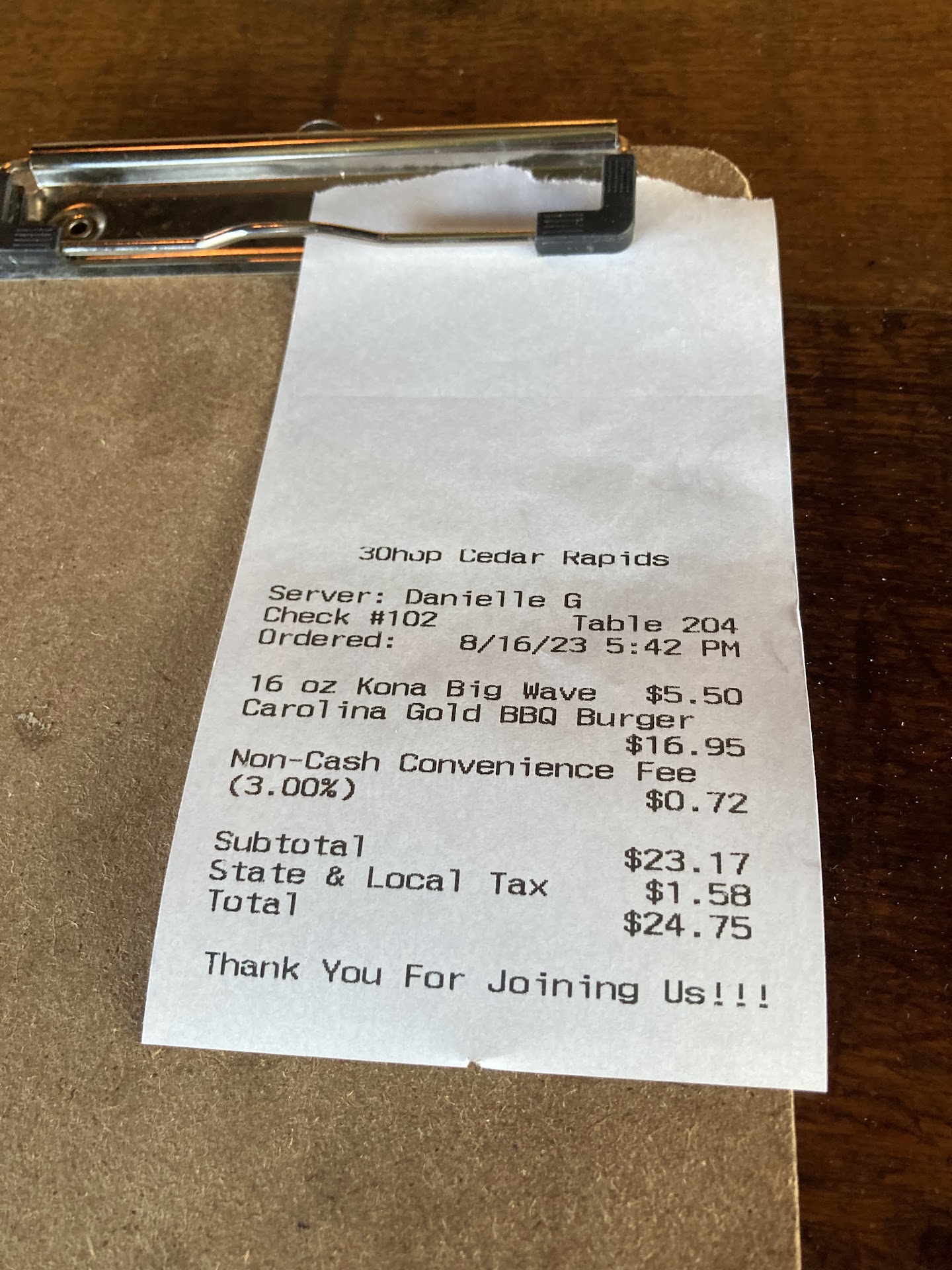 I've been to this location 3 times now. The first time I was treated very poorly by my waiter who disrespected me, ignored me when I flagged him down and prevented me from ordering beer 30 minutes before bar close. The second time I was treated fabulously by a bartender who went out of his way to make our experience exceptional and told many stories to enliven the food and the location to us. I have come here for a third time and was told I could order unlimited samples of beer 3 at a time. Then after I picked my first 3 they told me the max was 5 so I only had 2 other options before I had to pay for them. I said I was very willing to pay but after my next 2 samples they cut me off of samples entirely. My water was delivered with a very bitter chemical tasting film on the glass that made me gag. The waitress forgot our sauce with our sweet potato fries appetizer. At the end of our experience the manager was very condescending and abrasive and made my girlfriend and I feel extremely uncomfortable and unwelcome here. The food has been absolutely top notch every time I've come here. It always looks beautiful and tastes amazing. I highly reccomend the truffle fries with spicy aioli, the unami burger and any of the tacos. If the service at this location was better I would be a regular as I live close by. But I do not like being jerked around and ignored by staff or having my beverages delivered in dirty chemical coated glasses and having items I ordered forgotten. Being treated with such brash arrogance by the manager on duty made me decide to not return to the Cedar Rapids 30Hop in the near future. She was so cold and rude to us and I refuse to tolerate that level of abrasive behavior from an establishment I am paying to visit. This beautiful location is tarnished by the lackluster presentation of some undoubtedly magnificent product. So much...