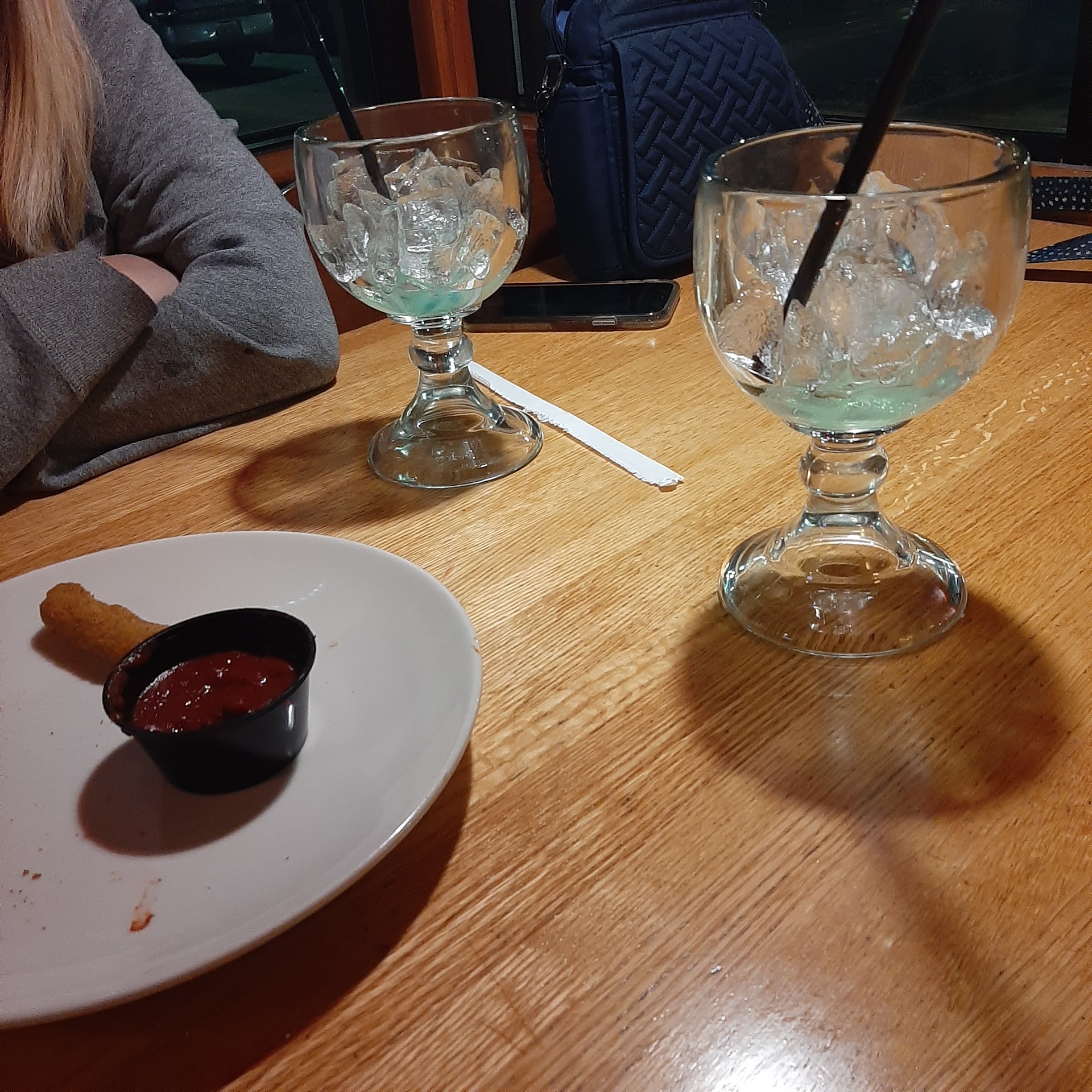 Server was okay. He was training someone tonight, when they entered in an Adios for my drink for the bartender, they made it "lit" meaning fireball was added. I don't care for the cinnamon flavor in that drink. Didn't even drink it. Server did not even ask if we wanted to speak to a manager, nor did he knock off any discount on the food and drink. I don't care about a discount, but at least get stuff right.