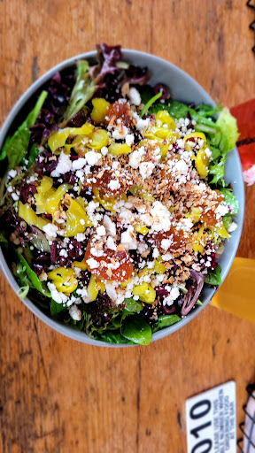 As far as gluten free options go, the only side that’s safe is a side salad without croutons. The fries are battered and from a shared fryer. Even a baked potato as an option would be nice. They do have a gluten free bun, but they were out when I was there. I only have ever felt good about ordering the Poke Bowl with GF modifications—and let me say it is phenomenal—but I’d love to be able to branch out a bit from that. A bunless burger just always feels like a bit of bummer, especially for the price. The outside seating is so fun, and there’s a play area just outside the outdoor seating so the kiddos can play while we wait for our food, which is great. The vibes are there, which is why we come back, even if the menu isn’t the best for me and the service has been a...