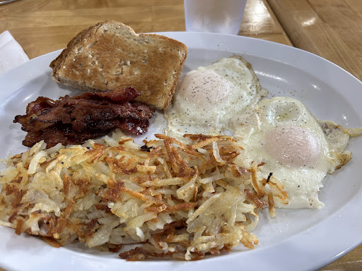 Tasty breakfast. Plated with care. Where the yokes run wild and the whites stand fast. Better than typical wheat. They serve REAL butter. 👏🏼👏🏼👏🏼 Not that mambie pambie wanna be spread 🙌🏼😂 Overall yummy. Hash browns are done right. Though the bacon appears recooked from prep. It was okay 👍🏼