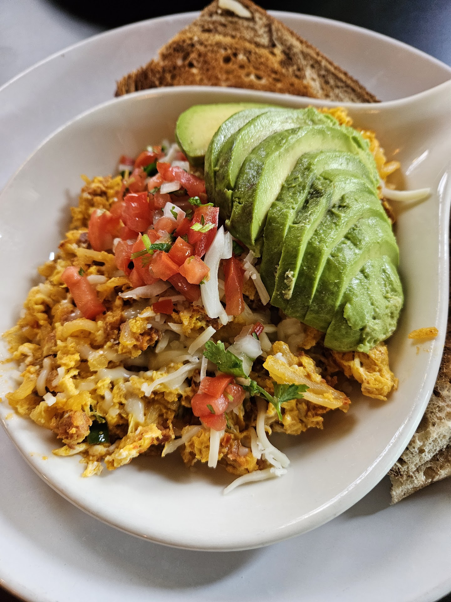 I breakfasted in the NewBo district this morning at Cafe Tacuba. This was not the first time I have been to the restaurant, rather a return visit due to their excellent cuisine and extensive menu. I arrived around 8:30, just prior to the place filling up rapidly around 9:00. The service has been both fast and slow previously (always friendly), on this occasion, it was brisk and efficient. I ordered Kori's Skillet, a delicious dish consisting of chorizo, jalapenos, pico de gallo, pepperjack cheese, and avocado. Hashbrowns, American fries, or breakfast potatoes are the choices for the base, and, of course, eggs (‘browns & scrambled today). I have had breakfast skillets, scrambles, shipwrecks, etc. numbering in the hundreds, if not thousands, at this point in my dining career. This particular one was yummy, which given my love of breakfast and wide tolerance is not surprising, but what makes it stand slightly taller than the others is balance. This is important to me in many dishes. Too much or too little of one item can dramatically change the taste. In the case of the humble skillet, too many potatoes can make it feel like a dressed up side order, too much chorizo can make it too heavy or greasy, too much cheese can introduce a gummy, glutinous quality (a particular downfall that occurs far too often). Not so with Kori's Skillet, every ingredient in good proportion and combined well, not muddled into a pool of breakfast, but combined so that one gets all of the components in each enjoyable forkful. Well done, Cafe Tacuba👏 The breakfast menu is two-sided, with (at my count) 64 dishes available! I'll repeat that, this restaurant has sixty-four separate breakfast items, ranging from Mexican classics like chilaquiles to bacon, egg, and cheese on a croissant. That is an impressive range! I will return again, and probably again after that. After all, I have 64 dishes...
