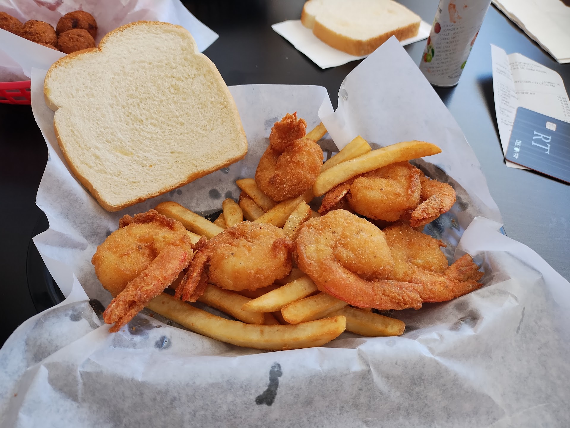 Read moreWe had heard about this place online and thought we would give it a try. We ordered two of the combination dinners for takeout. When I got the food home, we first discovered that the cole slaw was missing from our dinners. Next, we opened the box to find one soggy piece of common white bread on top which we promptly fed to our dogs. The hushpuppies we ordered as a side were very good, as was the chicken. We found the fish to be very greasy though, and the fries to be pretty soggy as well. All in all, I would give then Kudos for decent fried chicken and friendly service, but we likely won't be returning anytime soon as all the grease gave us each a bit of a tummy ache by the time...