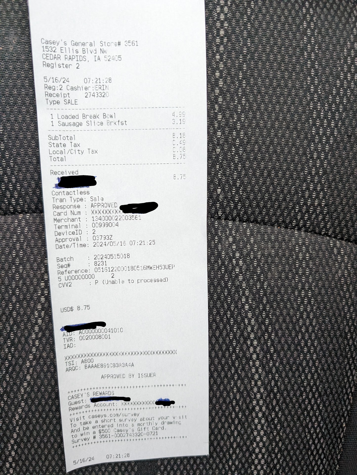 Read moreToday was the first day I visited this location. The breakfast pizza looked like it had been sitting out for a while and the breakfast burritos looked like they were about half the size of other Casey's. When I went to check out, the person at the counter was running between registers and having a conversation at the other register than I was at. I finished my transaction and when I asked for a receipt, the person at the counter sighed and didn't say a word. When I asked if there was any issue with getting a receipt, they said no. They did apologize for the sigh and told me it was not about me, but it sure felt like the conversation at the other register was...