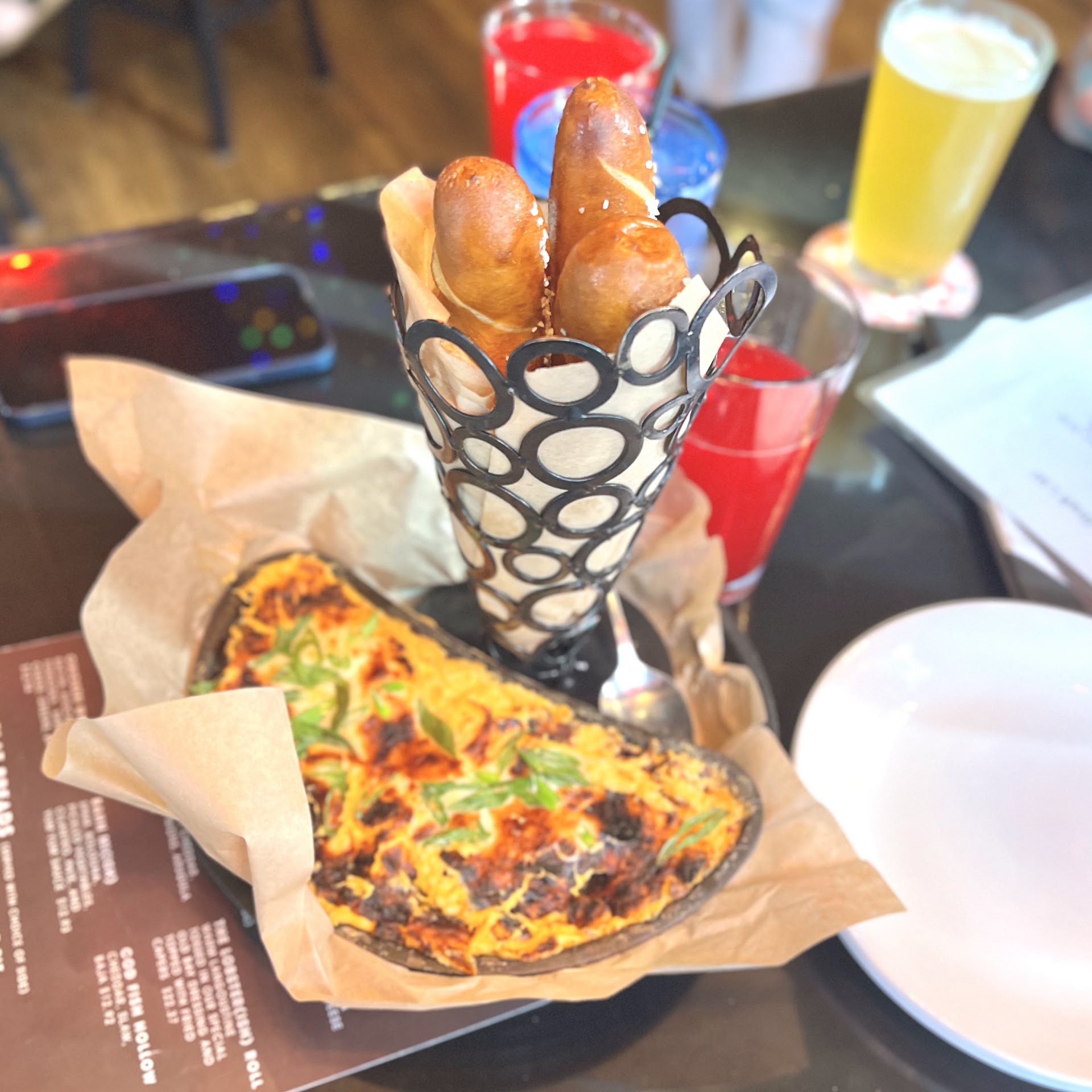 We stopped around 630 pm on a friday. We were downtown using VEO scooters and wanted to find a place to have a drink and a quick bite. Found this new place and walked in. It was insanely loud and there was a huge party of about 10 plus people right in walkway of the front door who were obviously overserved and heckling me right as I walked in. We found a table and sat down to wait about 5 to 10 minutes for anyone to notice us. Granted the service was great afterwards but this party kept getting louder and screaming. Yet the bar kept serving them. Another mother and her 3 daughters walked in and had to move several table away from them as they were so loud. Granted they were only matching nightclub volume of the music playing. The beer selection here is vague and almost all dark ir IPA's so i ordered a domestic . Our food came out fast but honestly it's not worth the price as you could make most of this at home. Very little imagination. I think this is a "dive" bar with a identity crisis. What was ultimately the point I refused to come back is when the manager clearly came up to us and asked if the food was alright and we didn't complain but did nothing to stop these drunk fueled party guests or calm them down for other patrons who were clearly annoyed. Not worth the headache or lack of irresponsible serving to go here. I'll be honestly shocked if I ever go...