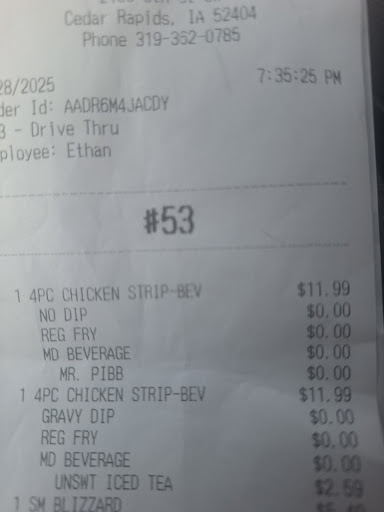 Read moreTerrible place personally. They forgot to give me my card back I had to remind them. They just set it down on their counter. They forgot a spoon and i had to ask for one. The blizzards were melted and spilled all over us on 2 minute drive home. This place apparently also doesn't honor diary queen deals just because. So don't bring app or any thing from official dairy queen here. If I could rate lower I would.
