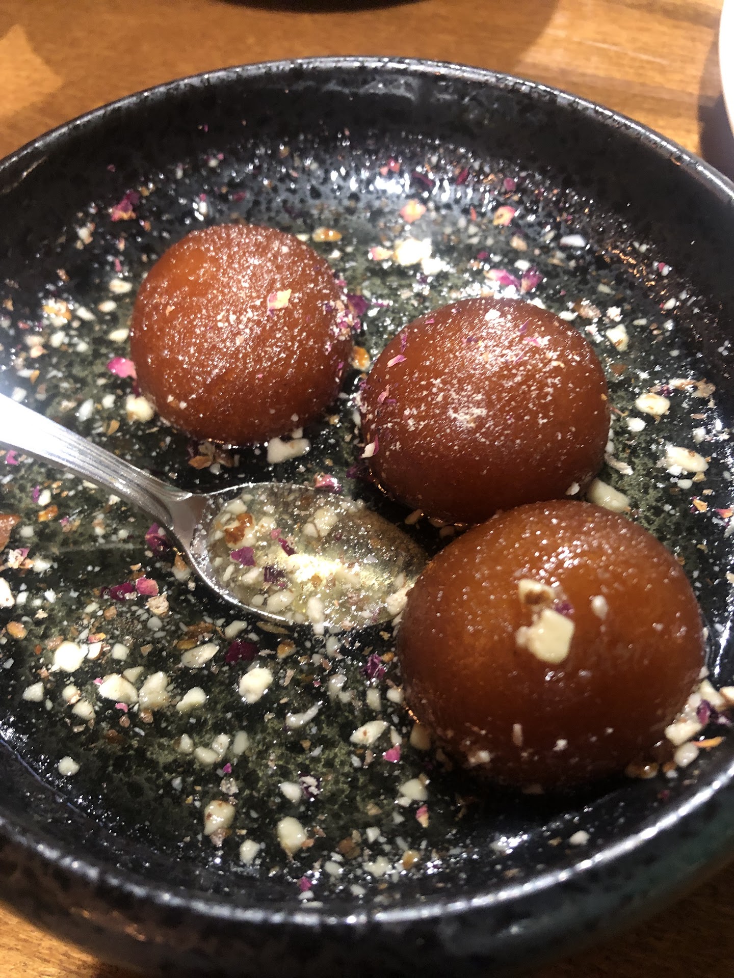 Original review: Delicious dinner, as always! I had butter chicken and hubby had shrimp tikka masala. I also tried the masala chai, which was pretty good, but I prefer their nutty chai-chino. We also had dessert- gulab jamun and rabri kheer (rice pudding). Their signs say those two desserts are only $1 on Wednesdays, but apparently they limit it to just...