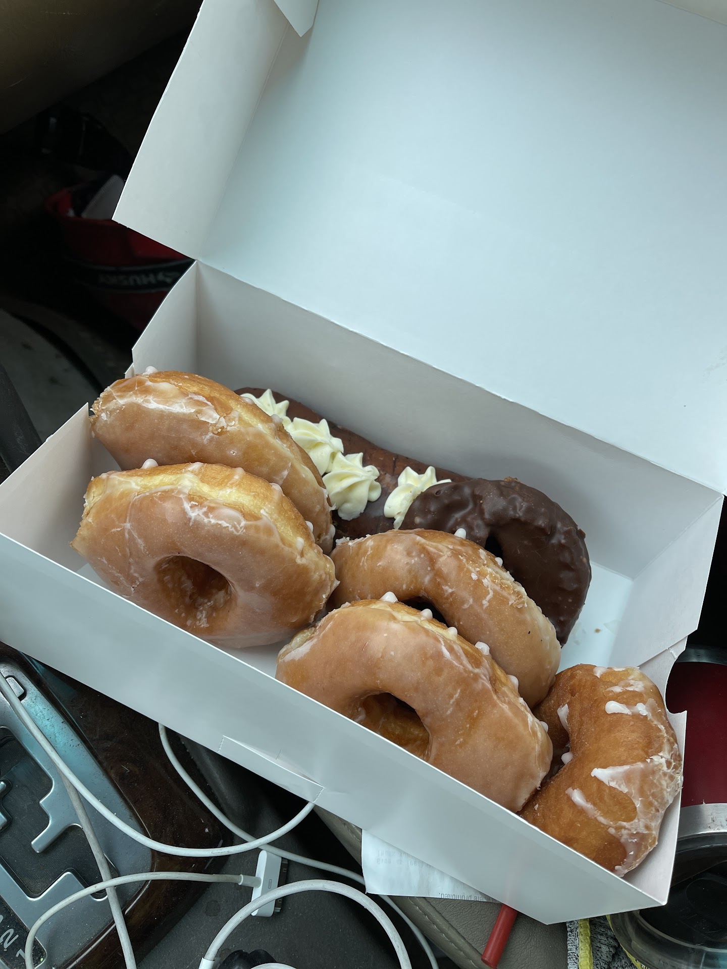 Went there today 4/5/25 at 8:00, hardly anything left. The one lady with glasses, ponytail and sores on her arm was very rude. She said we were here all night! Really?? If you were then there would be donuts left at 8:00am!! Never...