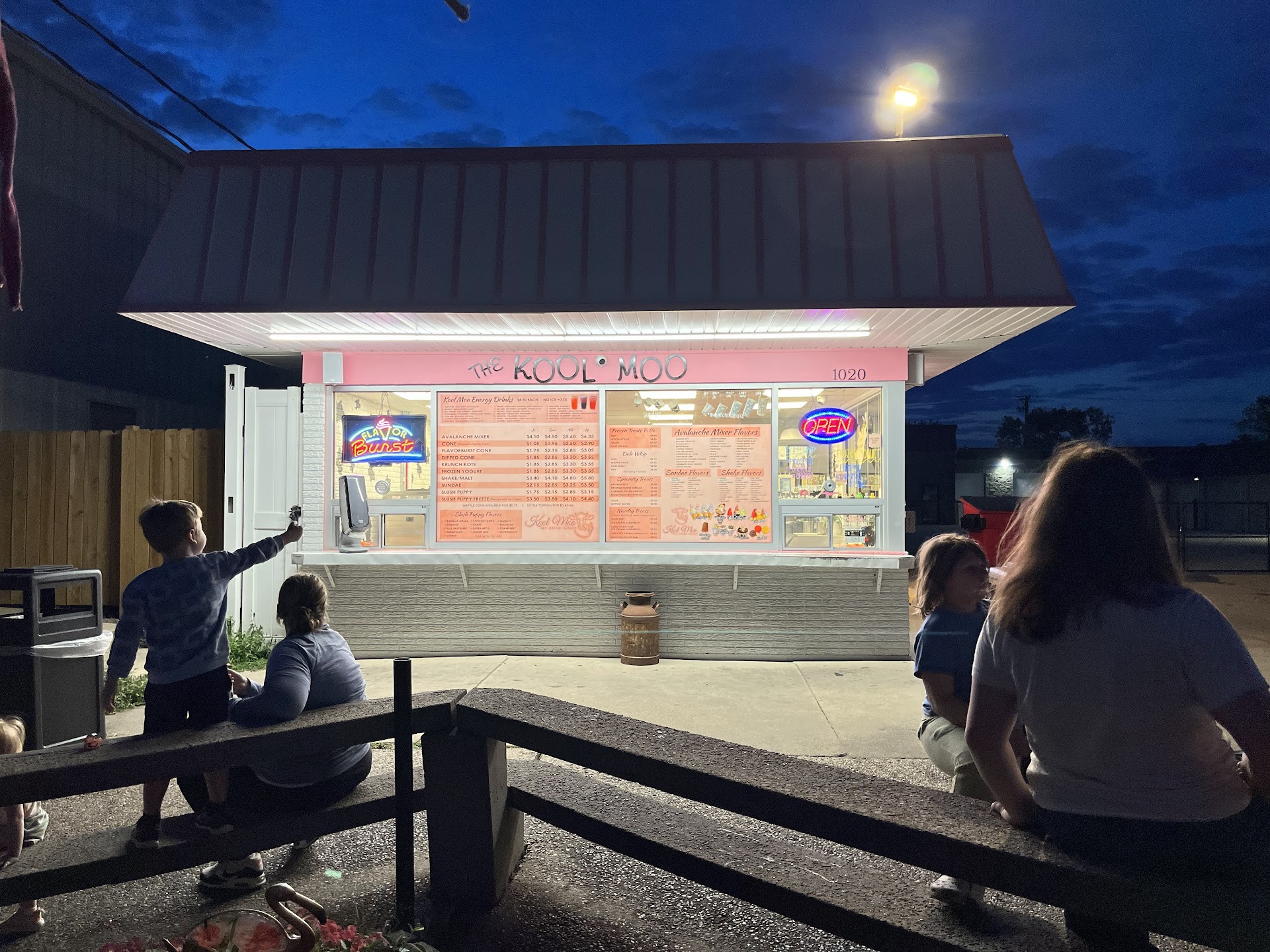 1.) Leave home 2.) Walk to Kool Moo 3.) See large sign after onto Old Marion Road from 100+ feet away with posted hours (closing at 10p) 4.) Approach window at ~9:07p 5.) Be advised they’ve closed at 9p as people are still waiting to receive their orders at the window 6.) Leave disappointed