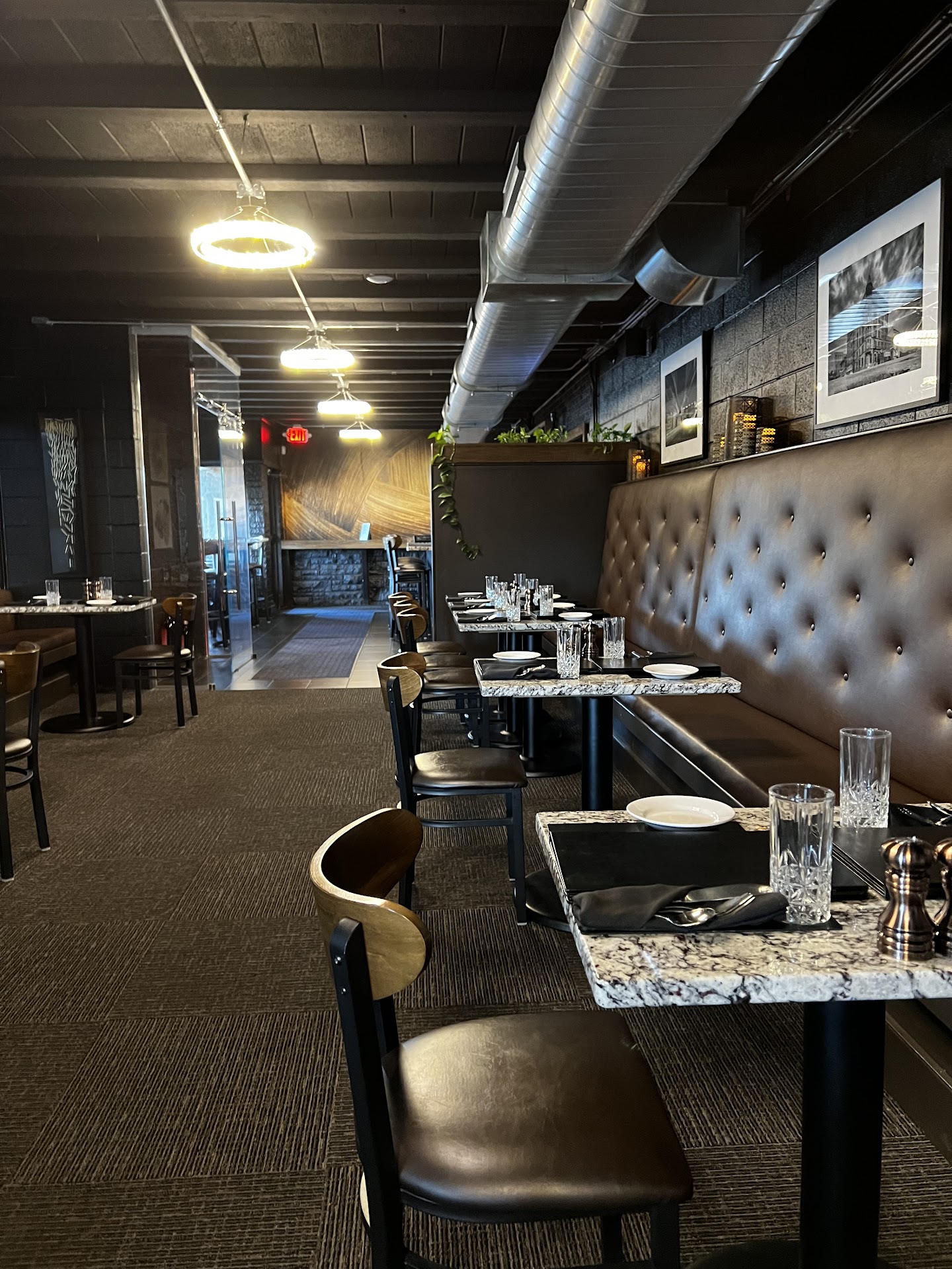 Read moreCedar Rapids Medq area-Carol read about this place, the guy was raving about the Wagu burger. We read online you needed a reservation and dress code policy… discovered the burger is on the bar menu and no reservation needed to sit in the bar (only place you can sit to get the burger (use the north door)). It’s dark and not real impressive of an atmosphere (we began in fine dining area, no real intimacy, dark, with next table close enough to pass the salt) then moved to the bar. The bar was dark, cinderblock walls.