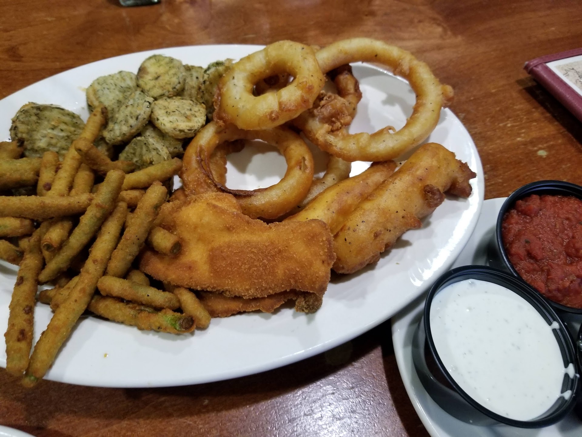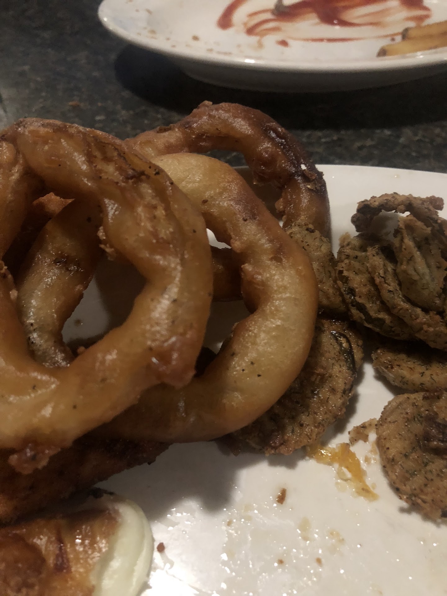 Read moreGreat waitress & service, but very disappointing visit won’t go back. Have had better, but last 3 visits have been increasingly disappointing. Food was very greasy (4 napkins for 1 chicken tender greasy.) Food was slightly burnt, oil needed to be changed. Took 39 minutes for a burger & sampler. Fried pickles were so greasy we could not eat them. Burger had no seasoning it tasted like a frozen patty tossed on the grill. Burger was served with fries. Asked for extra crispy fries, came out not cooked all the way. Was very loud. Waitress was very attentive & kind. On my other recent visit with a group, we reserved the back room. We were told we were bumped into the middle room where we became the walkway for the large party in the back. The doors didn’t stay closed to the back room so no one could hear each other and every 3 minutes someone had to get up and close the door. Food was very disappointing...