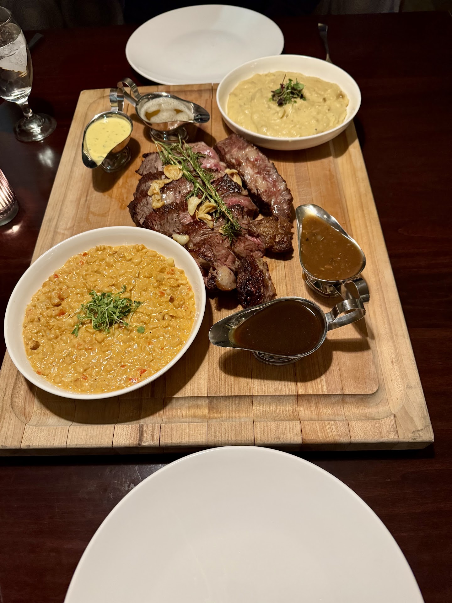 Read moreWe went to Peppercorn at the bank last night for my birthday. We are familiar with them as they catered our wedding and were very excited to be able to go for dinner last night as they recently opened their restaurant back up. The food was AMAZING. Not pictured was the southwestern crab cakes and shaved Brussel sprout Caesar salad. We decided to order the 40oz bone in ribeye with the mashed potatoes and corn to split. You could split this meal between 2-4 people it was so much food but it was all well seasoned and so good. The chef came out to our table and he talked about the meal and was really passionate about his career which made us really happy to be able to enjoy such a great atmosphere. It was an expensive meal but we are happy we were able to support...