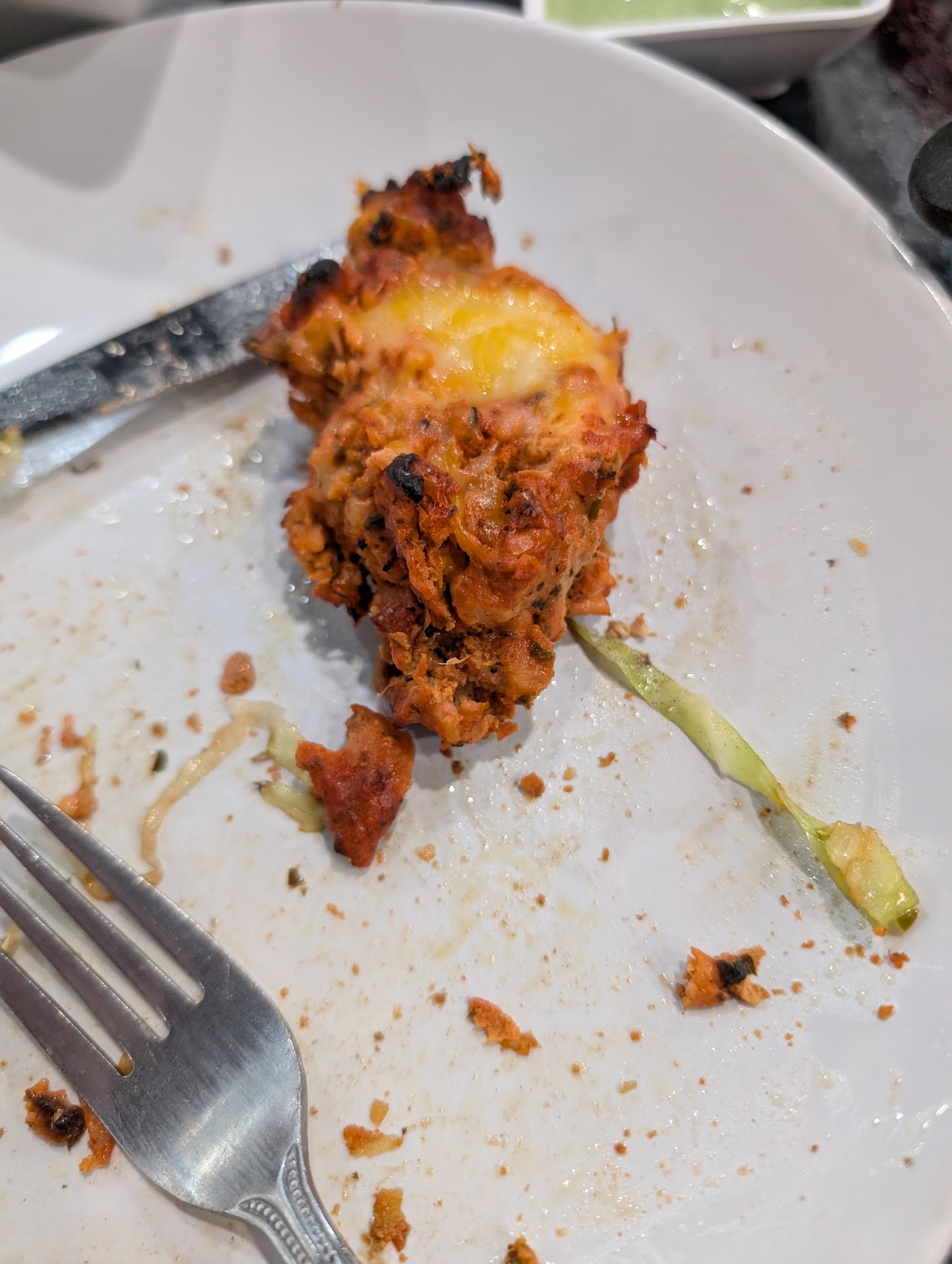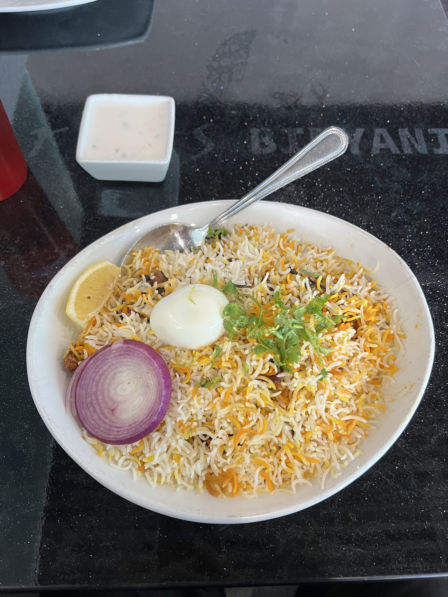My entree: Goat Dum Biryani (Medium) - Beautiful, first of all! New flavors popping out from bite to bite. If you get goat, you should expect to get your hands involved as some meat comes on the bone- don’t just “dig in” and chomp down blindly. That said, it was cooked tender so it came right off the bone nice and easy! Another review says it’s seasoned well, and they’re right! Great flavor, and the spice level was pretty perfect for a spice lover. Could take more if I had to, but it had the ole nose running!