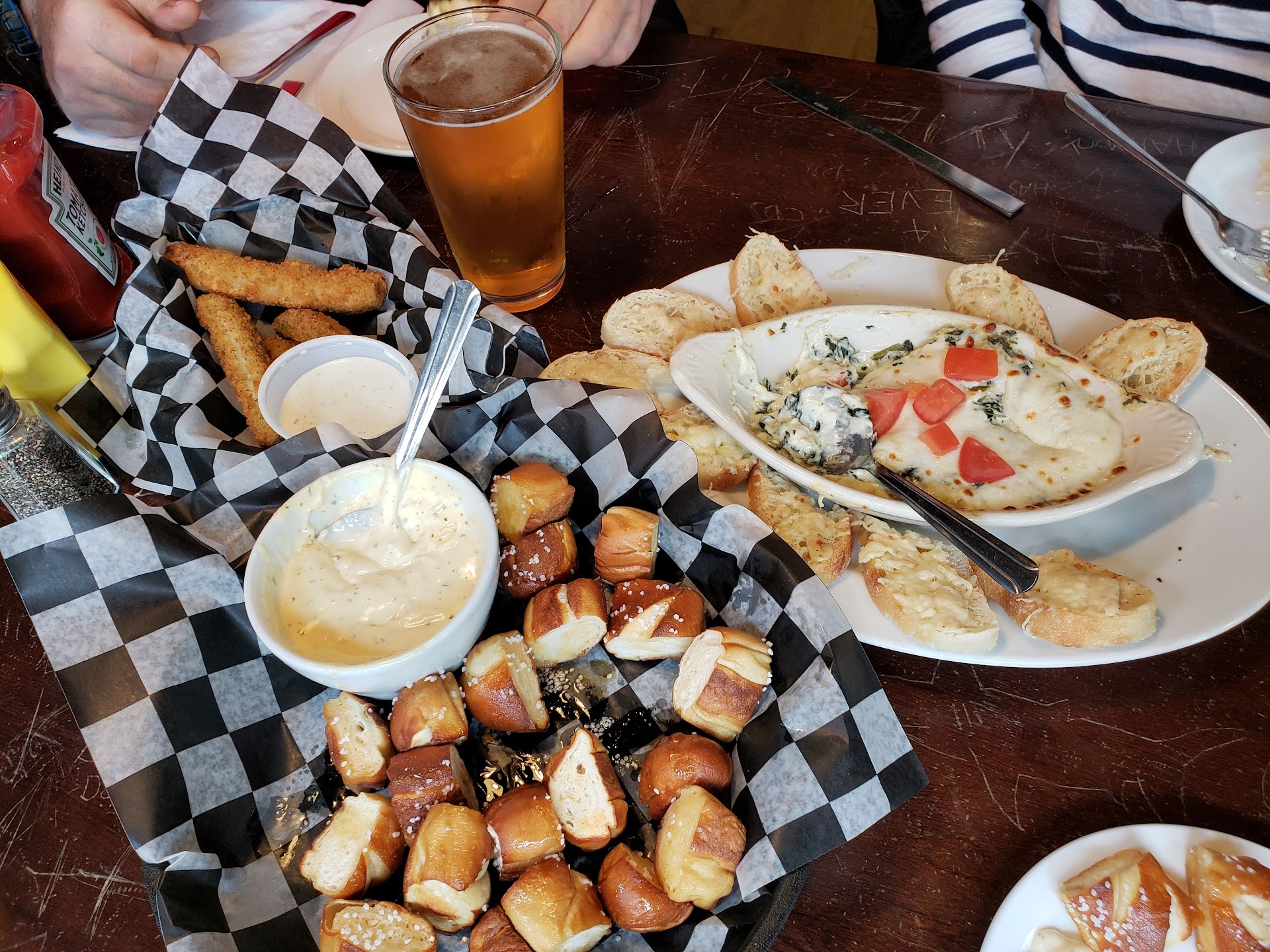 Read moreWent here as a small group. We all shared the pretzel bites with beer cheese, spinach & artichoke dip and the battered & fried pickle spears with ranch dressing. Also, three of us each had different styles of burgers, of which we all enjoyed (but I forgot to take pics). One person had the tenderloin, which they said they enjoyed (also no pic).