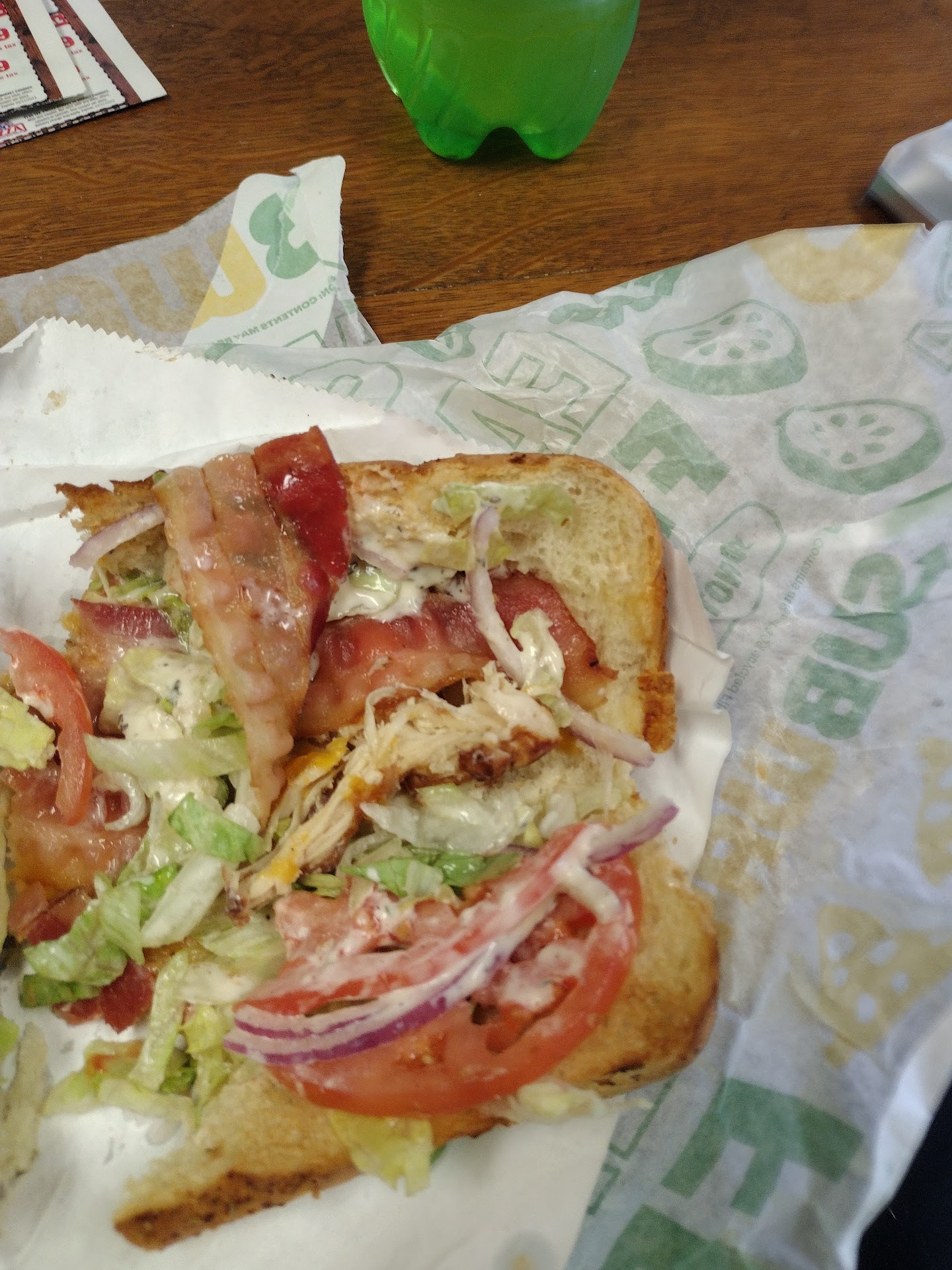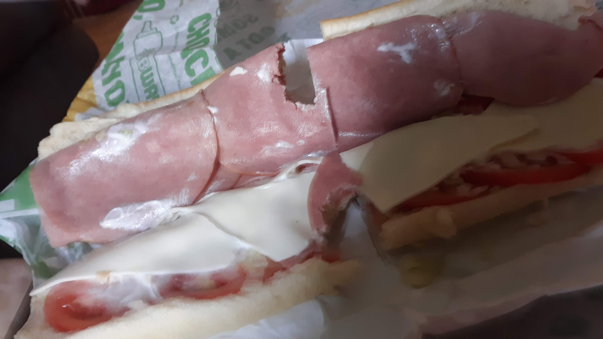 Read moreStarting with the good.....the sandwiches weren't horrible. Ending with the bad experience. Yesterday we choose to order online and pickup. 20 minutes later , we arrive and are told that they were out of the meat chosen for one sandwich, so they didnt make our sandwiches. They told my son that he could choose another sandwich as they cant refund. My son is studying the menu board as the sandwich he was charged for is a bit pricey. The guy working the counter tells him to pick ANY sandwich because he is paying the same anyway. Well. Duh. That's why he didnt choose the cold cut when he paid for double rotisserie chicken...... we wondered why they hadn't called when they found they were out of the meat as our number is on the receipt. They also didnt get my sandwich correct as mine was extra meat , extra cheese, extra tomato. Picture included to show what I got. I used to love Subway, havent ordered since prices went up and quality went down. Watching the staff member go out and play in the dining area as we drove away was the clincher. They restaurant was empty when we got there , 630 on a hot evening, no one is buying a cold sub? Hmmmm. Me thinks these boys need adult...