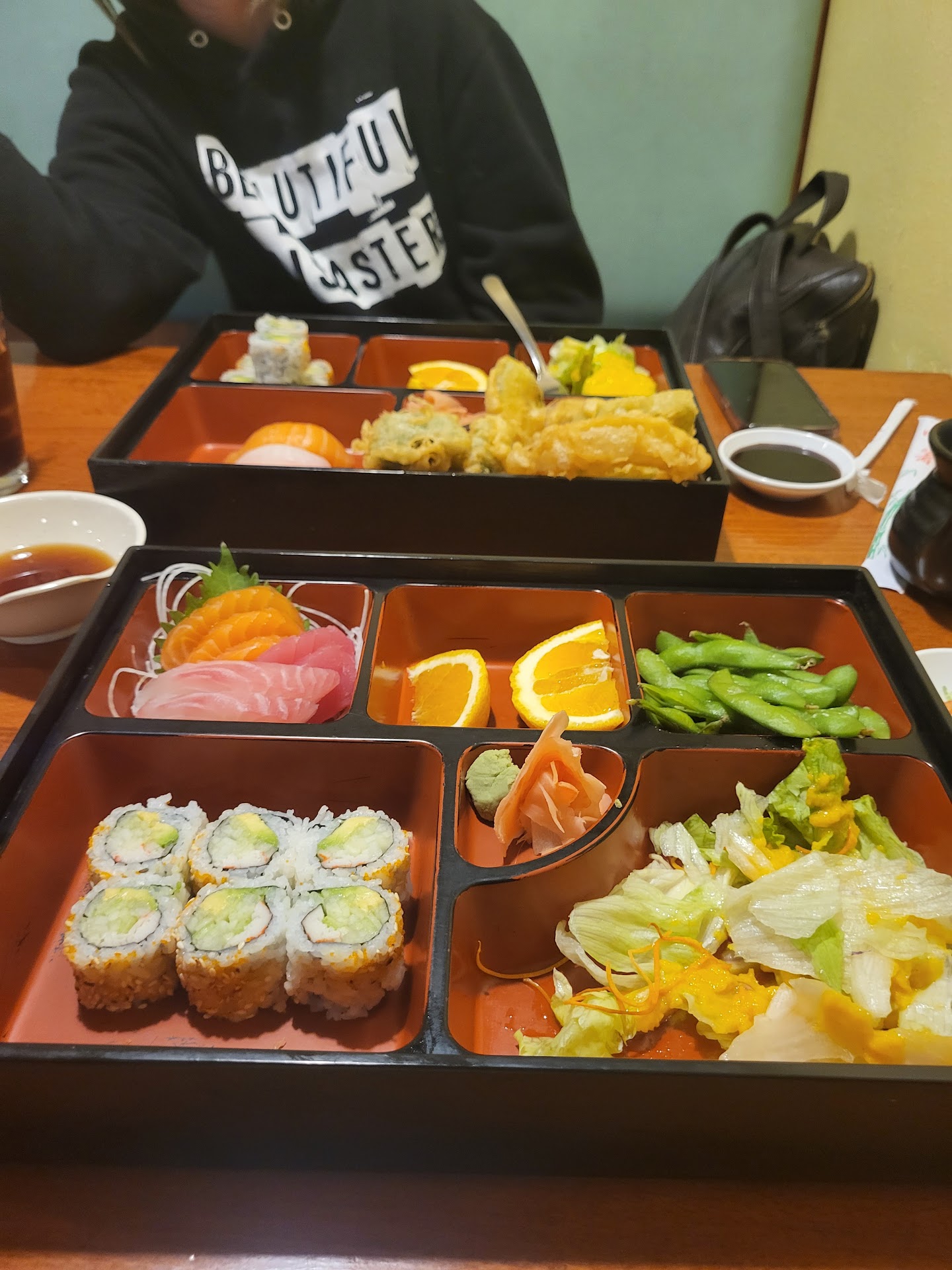 Food: The Angry Dragon Sushi roll that I ordered? Italian hand-kissing gesture It was fantastic. No complaints. However, my mother ordered the spicy scallop roll and afterward informed me she was forcing herself to stomach a very gelatinous texture in her roll that she'd never experienced at any other sushi restaurant. My grandmother ordered a mixed tempura platter on which everything arrived breaded. A very heavy and greasy dish which was accompanied by literally zero flavor on any of the various pieces of the dish.