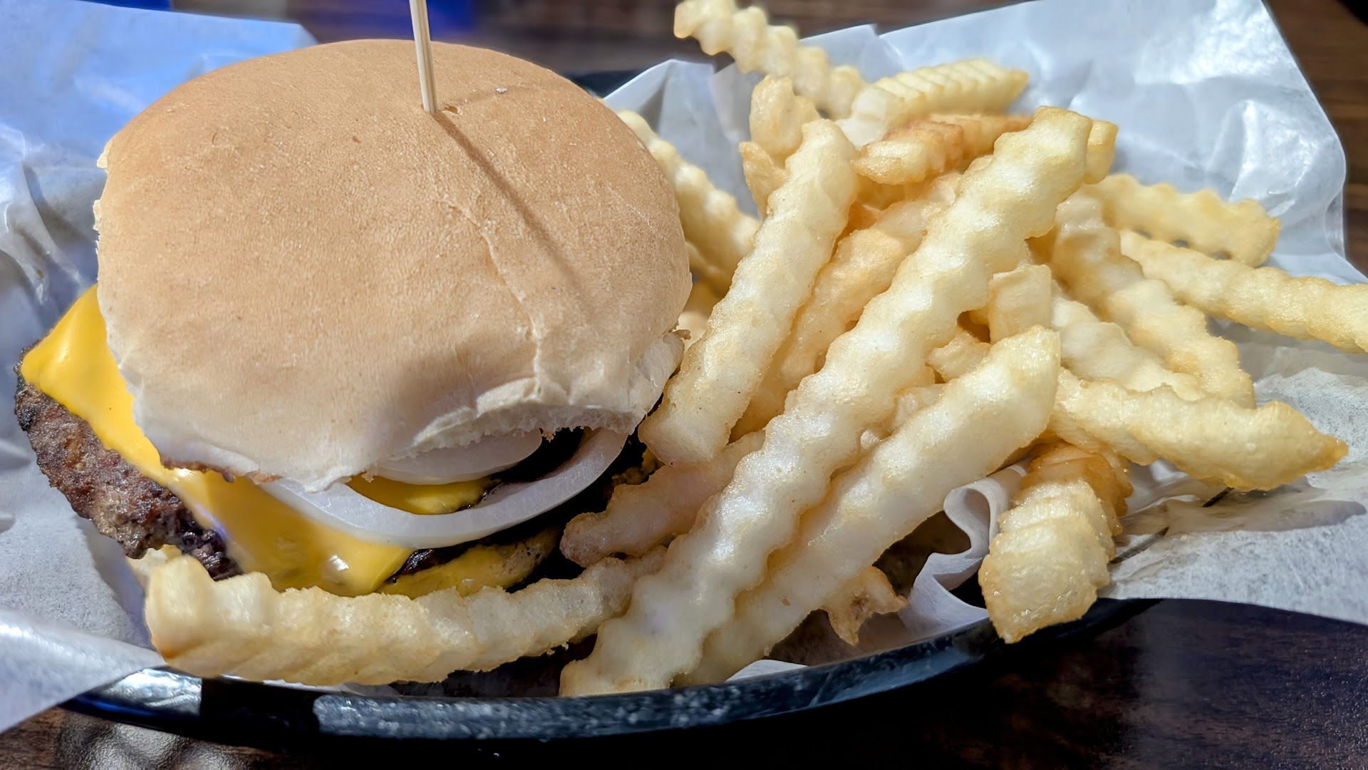 They don't have a smoking area so all the regulars hang out right outside the door and smoke. Within 4 ft of the door. Again if this was a bar I'd have no problem with that but since they advertise this a restaurant and my visit actually had children there, that is really disgusting to have to take your children in and out of a smoke cloud to get to a restaurant to eat. The parking lot is completely broken up and covered in Weeds so you are not even sure where to park and it feels very shady on the outside and parking lot. I was concerned that my car may not even be there when I left. But I gave it a try cuz sometimes you can't judge a book by its cover. It's not their fault that the shopping center doesn't upkeep their parking lot. This place is not kid friendly and the food is not good. But you are a friendly atmosphere for adults to hang out and have drinks then this...