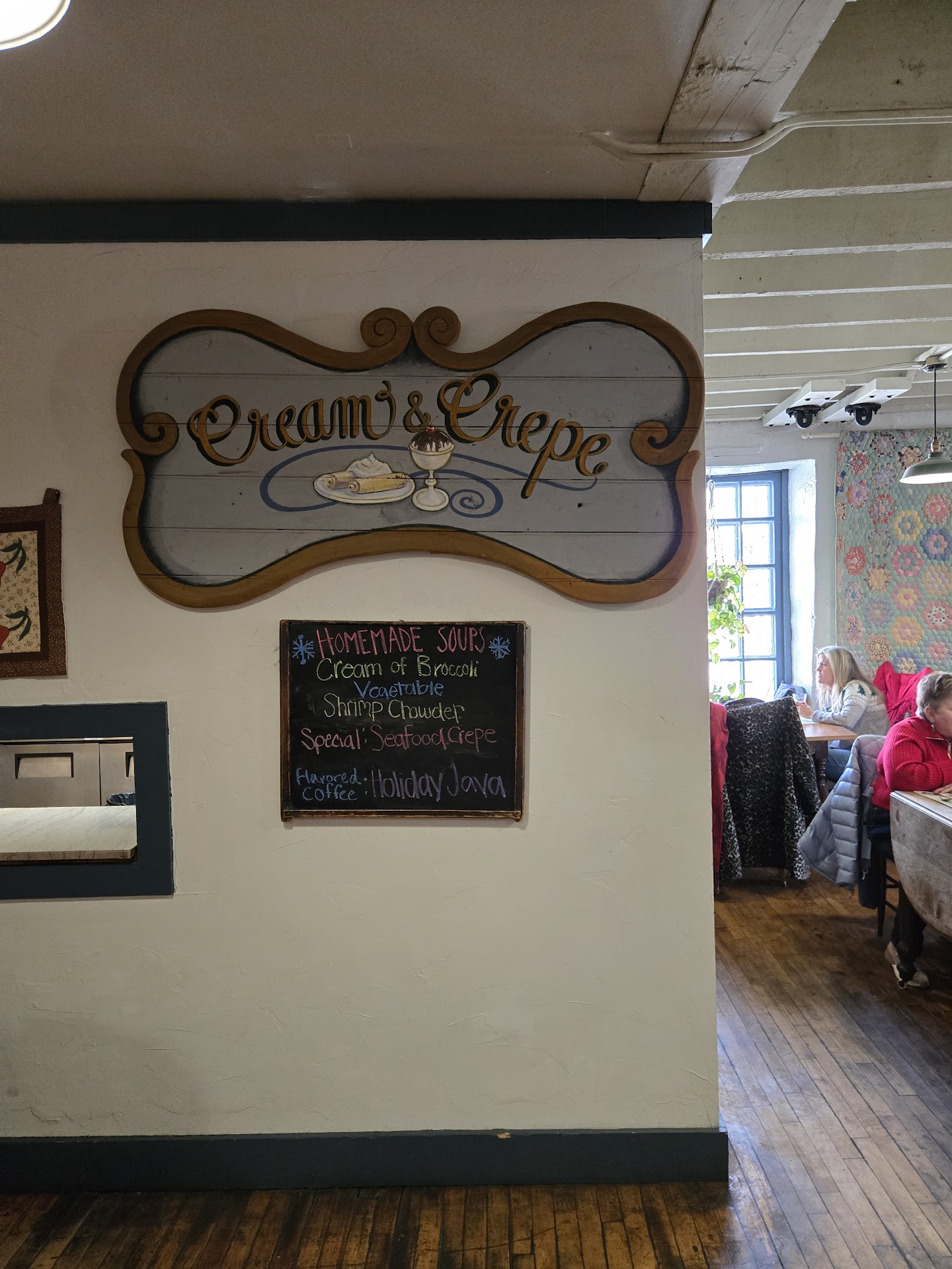 The Creme & Crepe Cafe features an amazing selection of crepe entrees, sandwiches, soups, and a spinach salad served with hot bacon dressing that is simply deeeeelicious 😋