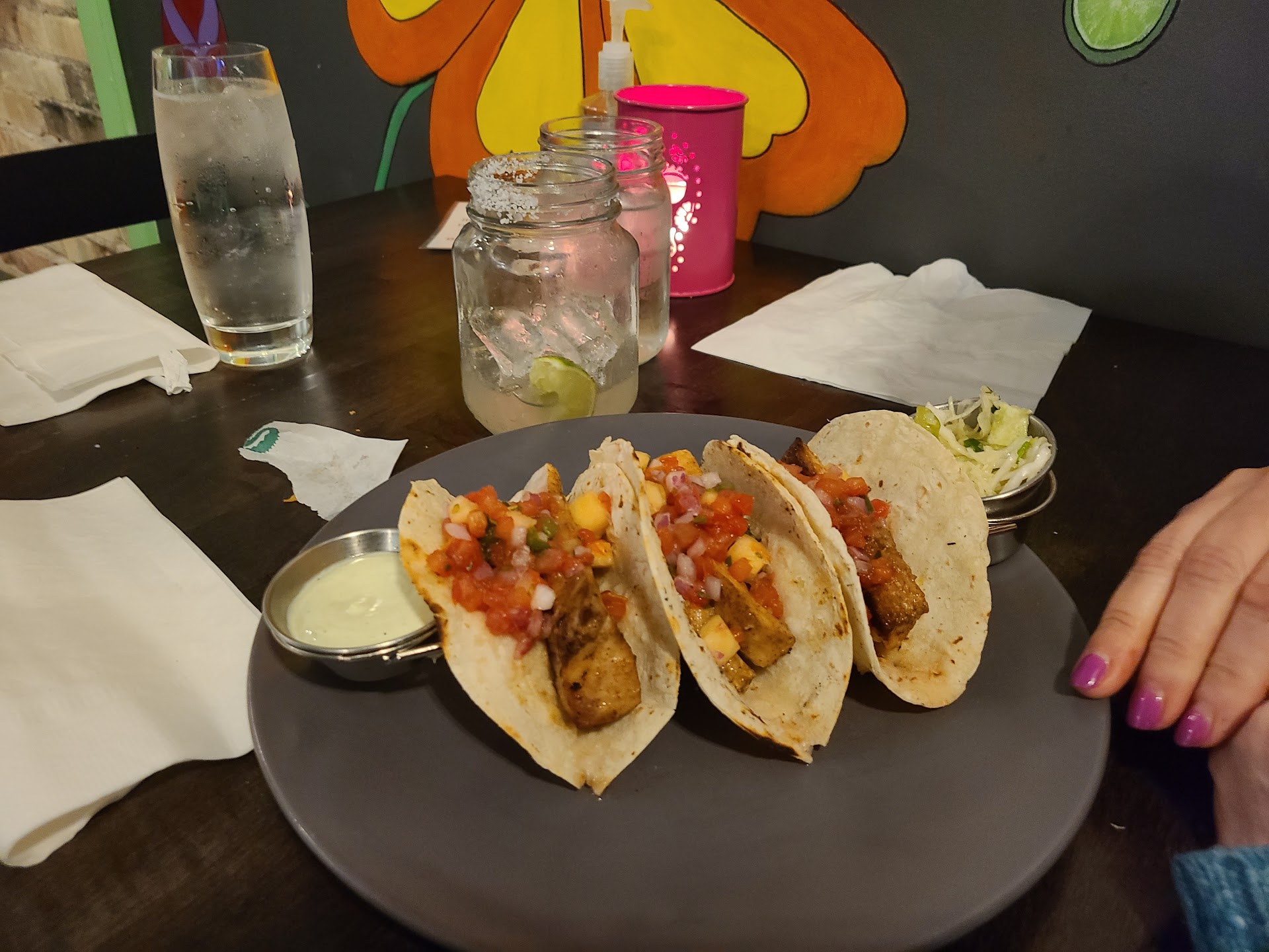 Read moreVery sad. Our bill was $70.19. Sorry. This was the worst experience I ever had in a restaurant and the waitress was very nice and that’s about it the soup the Mexican soup was good the dipping sauce and the free tortilla chips were very good after that it went downhill I had shrimp tacos that were soft all that were in there was a dried up taco that was soft and shrimp the shrimp itself was good but nothing else it came with the tiny little container of chopped up cucumber and cilantro The lime condiment sauce was good but there was a very small amount of it no rice no lettuce no tomato anything that would complement a taco was not fair it was just a shriveled up warm-ish taco which was really small and shrimp that’s it another member of my family had a I believe a salad of some sort it proceeded to come with a huge amount of lettuce corn The salad was $14 on its own when the waitress said do you want chicken beef or whatever she said chicken we assume that it would come with the meal however it was an extra five dollars the chicken was dry not moist at all it looked like hard to chew it look like it was some sort of blackened chicken but I just think it was just burned so her salad came to $19 and she said it was awful tasteless nothing just lettuce a bit of corn and some beansI ordered a margarita a tiny one that came to five dollars I’m sure it was just a mix and it was nothing special the two seltzer drinks that I had were five dollars apiece and those are fine but nothing we were extremely disappointed and will not be returning it was an expensive meal that was absolutely tasteless and no effort was really put into this...