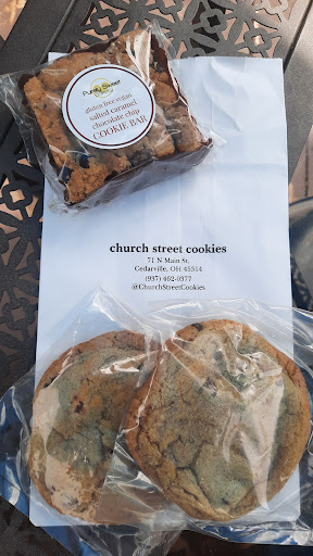Read moreFinally got to go to Church....Church Street Cookies that is. Pleasantly surprised to see a good select of gluten-free options! This time I got the chocolate chunk cookie (not gluten-free but amazing) and the Salted Carmel Chocolate Chip Cookie Bar. It did not disappoint, one of the best gluten-free treats we have had. With more options o choose I will need...