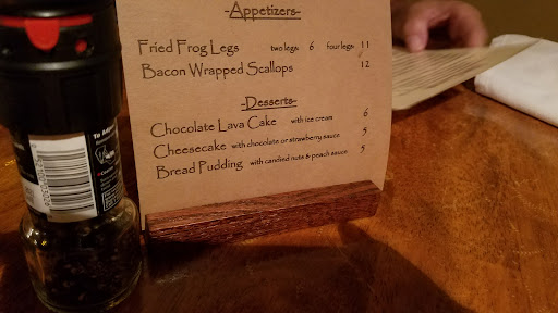 Read moreWife and I had our anniversary there this evening. It was very underwhelming, as I had hoped it would be as good as everyone said it was. The bacon wrapped scallops were delicious, especially with apps being half off. The drinks were good. I ordered a filet medium and wife ordered the Bone in ribeye medium. Her steak was cooked just fine, my 8 oz filet (which was a cheap cut of meat that looked like a hamburger for $32) was brought out well done and no asparagus. I brought it to the servers attention, and she was apologetic and offered to have a new one remade. She brings out the new one and one cut into it....it was rare, like purple rare with a cool center rare. At this point I wasn't going to complain and just eat it, and honestly had it been mid rare, I would have. Alas I couldn't do it. We brought it back to servers attention, and she was once again apologetic. She took the Filet and Lobster tail off the bill. She did ask if we wanted to eat the poorly cooked steaks as well. We declined and instead of risking a third miscooked filet, I just ordered a bison burger. It too was cooked well done, bit at this point we were just ready to finish and leave. They did take the filet/lobster off the bill l, however the bison burger we paid for. Looking back I wish I hadn't ordered it and cut my losses. Not once did a member of management come out and apologize or offer an explanation. We did see the owner there so I assume he was in charge, but I don't know since he never spoke with us.
