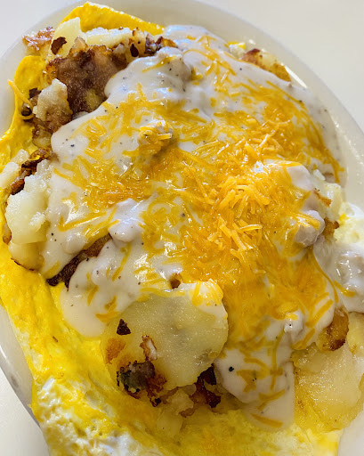 This is, in my mind, a classic American small town diner. The kind of place I grew up, eating in my hometown of 500 people. Itās not high cuisine, thereās nothing fancy about the food although I did come across a few things I had never seen before on the menu. Fried mush. Meat grits specials, like the scuttle butt and the chili Bob. An age old, but perfected recipe of eggs, meat, cheese, and a starch either potatoes ( homefries) or toast.