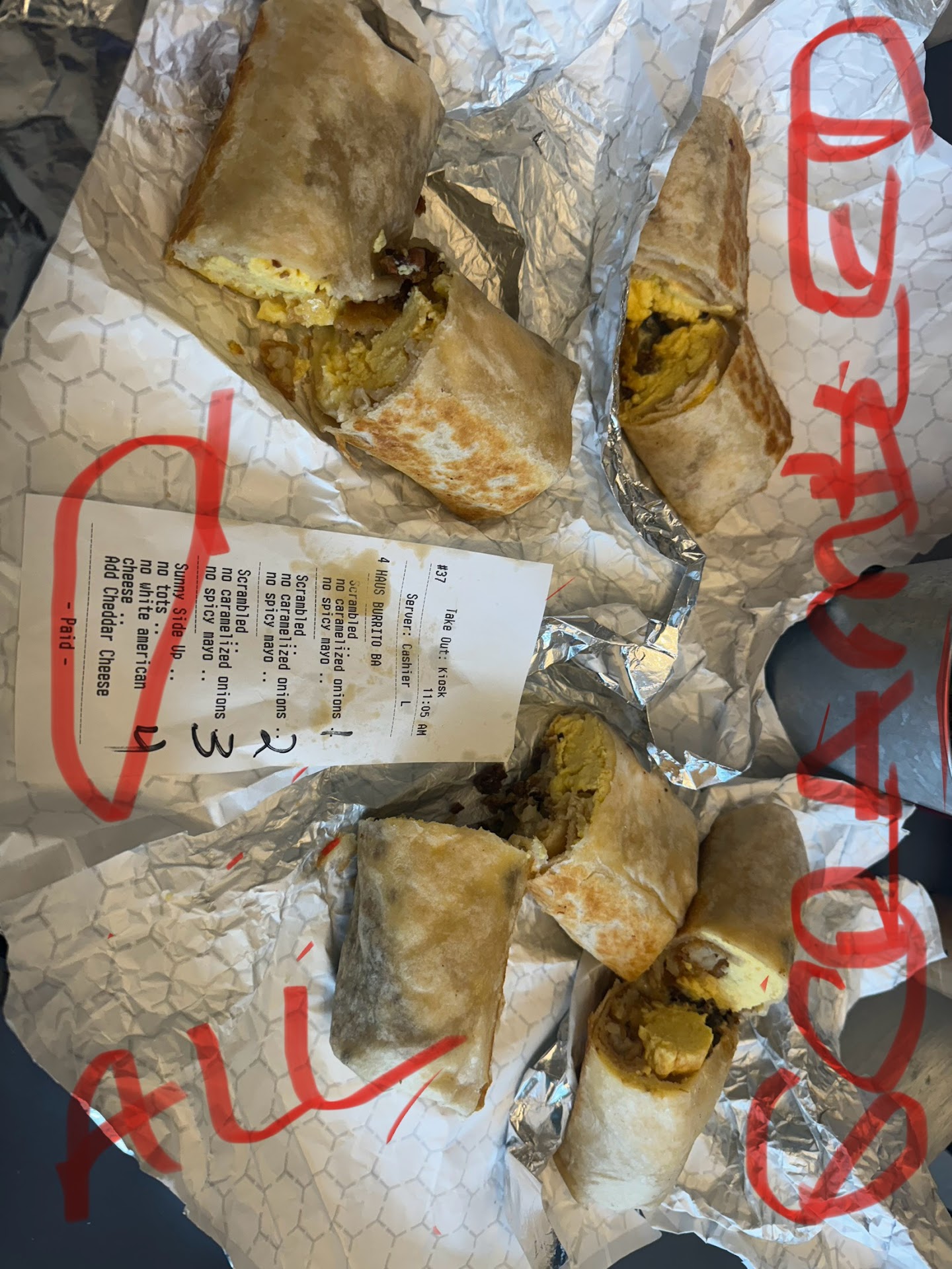 If you haven’t been to Bad Ass Breakfast Burritos yet, stop reading and go start the car. Seriously. These burritos live up to their name—bold, flavorful, and absolutely fantastic.