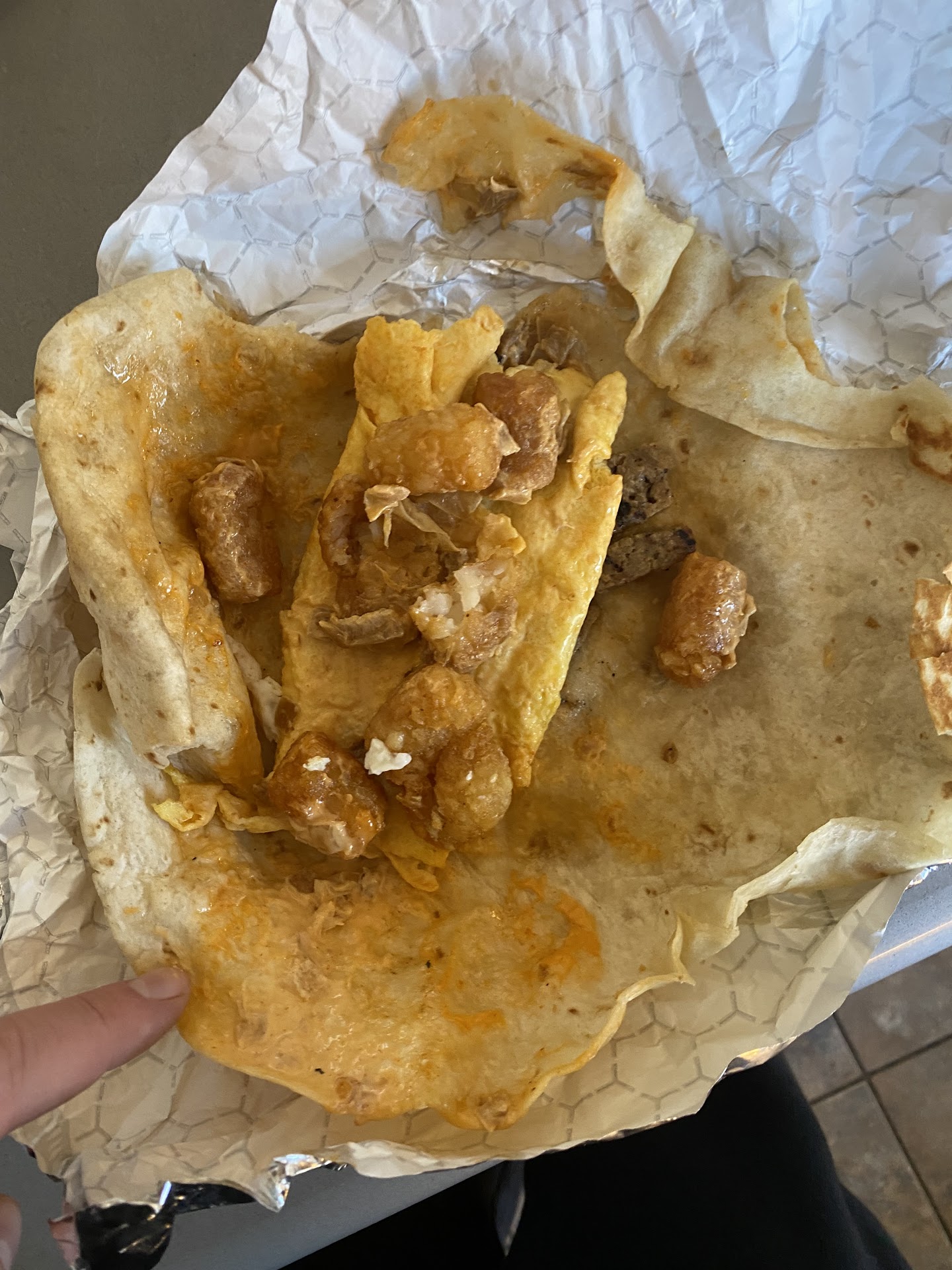 Ā Ā Ā Read more"Oooo they have beef chorizo, ooo they do over easy eggs in the burrito? Guess I'm ordering!" Gets the burrito, there's no chorizo, it has hot dogs in it, the egg yolks are cooked solid, which is nasty. Probably the worst burrito I've ever had. Nobody wants hot dogs in their burrito... If you're going to claim beef chorizo, then make beef choizo. Hot dogs are not chorizo. It tasted literally like hot dogs and tater tots in a burrito. The type of thing you finds in a trailer park...