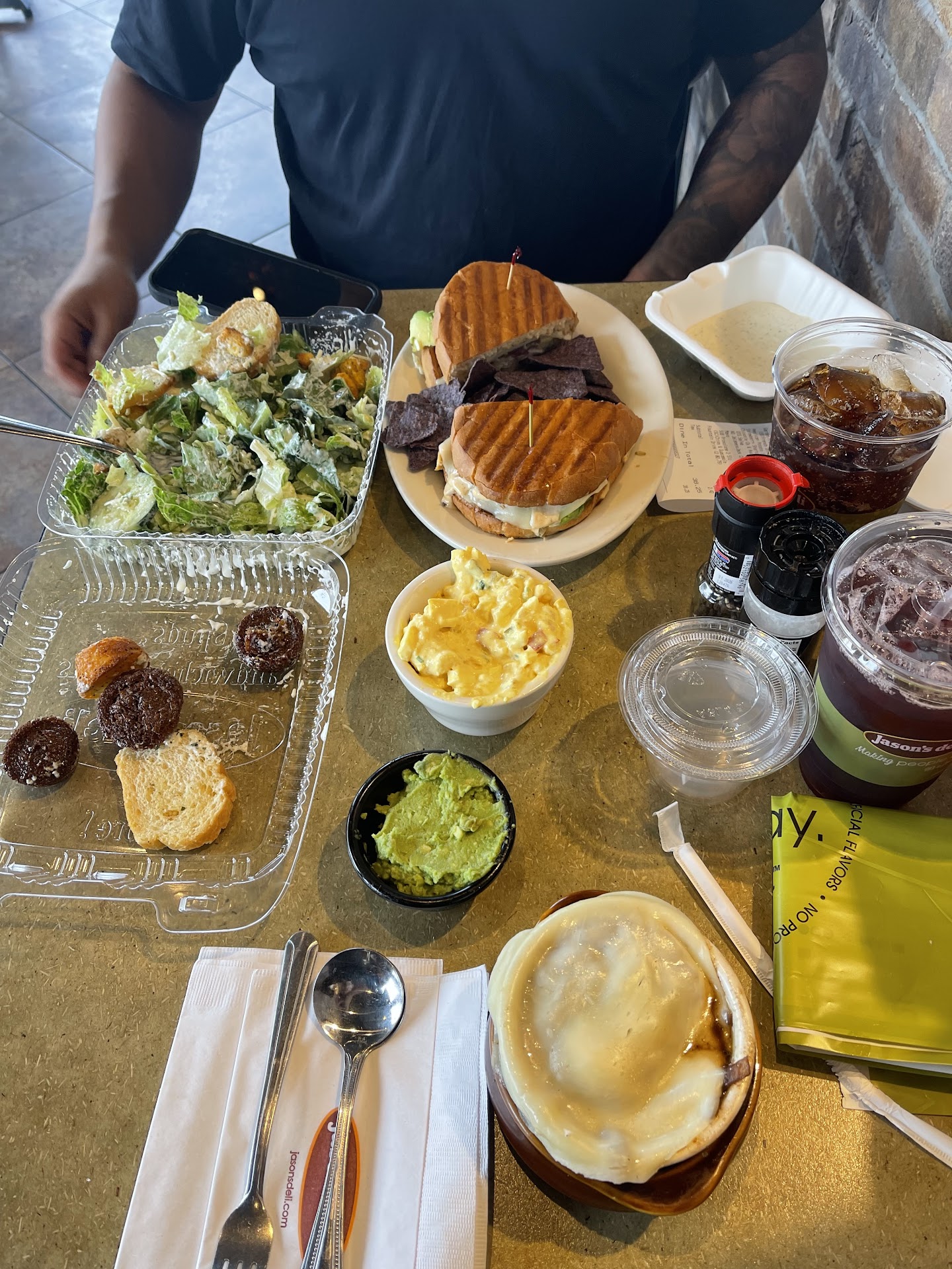 I know with an hour to go before close things can be sketchy anywhere you go, but at Jason's Deli the big draw is their salad bar. I went over to look at it before I went to the front and saw all the lettuce & spinach was low. My wife was at the cashier explaining what I was doing & I was greeted with attitude by the cashier saying everything was there. She didn't say she would take care of it until after I ordered and paid. Then after I picked up my salad plate, the same caahier aftet she stocked the lettuce was over at the salad bar in front of me and took the last pieces of (gross looking) cucumber for her own salad and never filled it back up. They were also out of tomatoes (except for a gross few sitting in yucky water- really no tomatoes or cucumber at a salad bar place?) & the nut mix was pretty much gone. Cashier didn't even seem interested that I was standing by her taking picturea of the items on the bar. (See three public pictures I posted) Several other things sure could have maintained for that last hour, but no one seemed interested. Been here many times before, so I would go back, as everything was clean and decent, but would not allow this to happen without bringing it to the manager's attention who did not seem...