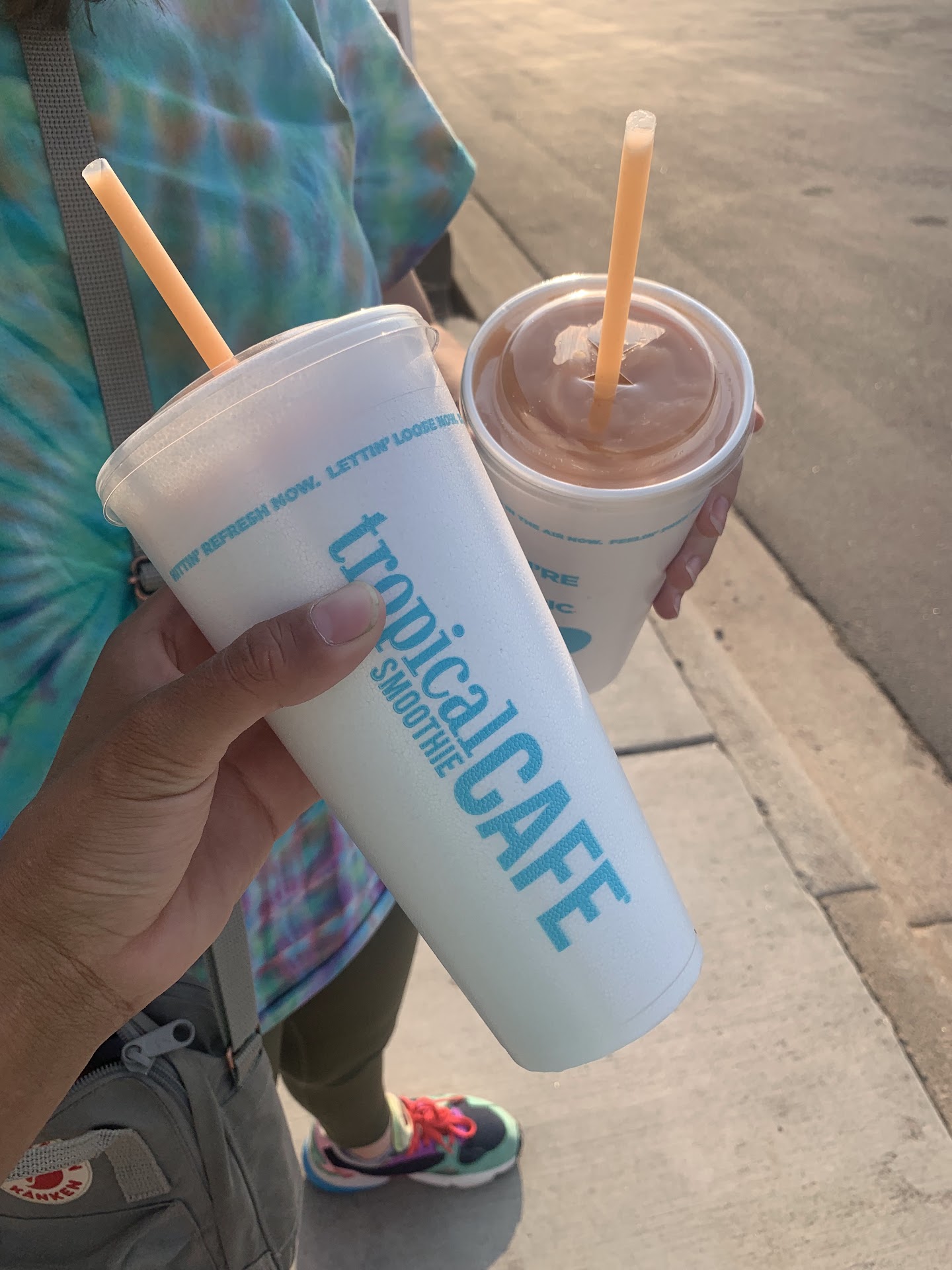 Read moreI love the Buffalo Chicken Wrap and the Caribbean Chicken Jerk Wrap with Sunshine Smoothie or Bhama Mama Smoothie. I love how Shift Manager in Traning Devante makes his wraps I believe they hold the food together a lot better. Every time I go in there he is always being corrected on something but my belief is that you should make it to the costumers liking and how they want it. I love the atmosphere when I go into Tropical Smoothie Cafe. Since I am Devanteâs girlfriend they are always asking him what time Iâm going to work when Iâm sitting there in the morning eating and saying well she cannot be sitting here all day and that makes me feel very unwelcome. All I do is sit for 2 hours before my shift. I donât think anything is wrong with that. I also find that Zack and Sierra are very nice and welcoming every time I come in. They always speak with me are always saying Hello very friendly. Kris is very sweet lady as well. Some of the employees I notice are most of the time in the back talking or on there phones most of the time. One Employee because it was slow proceed to sit on the counter. In my opinion is very unsanitary.