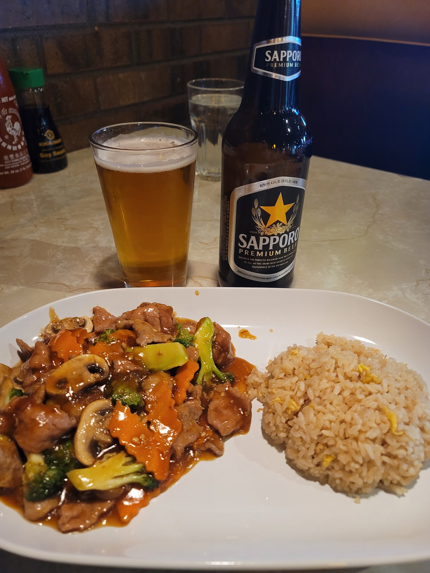 As for the food, I ordered the sriracha beef with fried rice. I will first start by saying DO NOT pay the $1 surcharge for fried rice, there were no peas, carrots, and only 1 tiny piece of egg in it, just go with steamed rice or brown rice. That being said the food was incredible the beef had great flavor and was one of the better Asian dishes I have eaten in a long time.