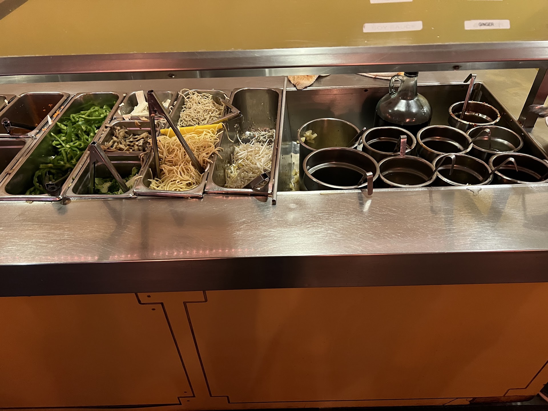 I went up to the ingredient station to gather the items for the grill and saw all types of raw meat piled up, mixed together and not properly separated. I gathered my items and went to the grill. I watched as the grill attendees put my food on the large flat skillet and began to cook my meal. The problem was that other peoples food were apart of the mix too and not kept separate as you would see at other Mongolian BBQ restaurants. By the time I received my food, I found quite a few extra items that I didn't want or cared for in my plate that came from other people's selections. If I did not want a particular item in my diet or had an allergy I may have been in a lot of trouble. Despite putting their sauces on the food, the meal tasted bland and basic, the rice also appeared to be sitting around for a while and the overall meal was not worth the $9.90 price tag.