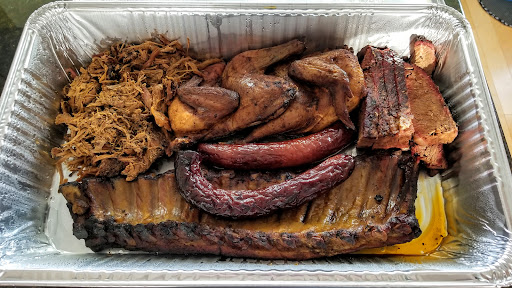 I got a take-away order on a weekend, including the 1/2 rack of ribs plate and the pulled pork plate. The BBQ sauces are excellent, especially the spicy sauce. There was not enough meat on the bones for the ribs and I thought they were too dry. Maybe they are better when more freshly cooked. The pulled pork plate had at least 4 times more meat than the 1/2 rack for less money.